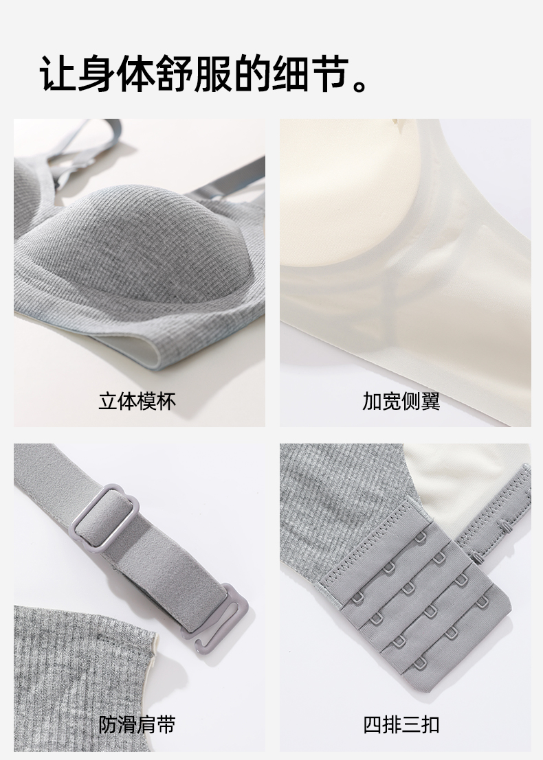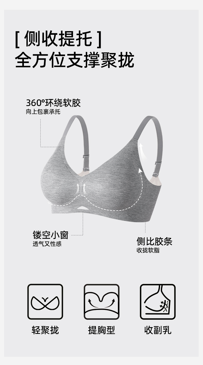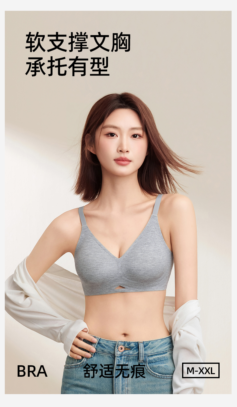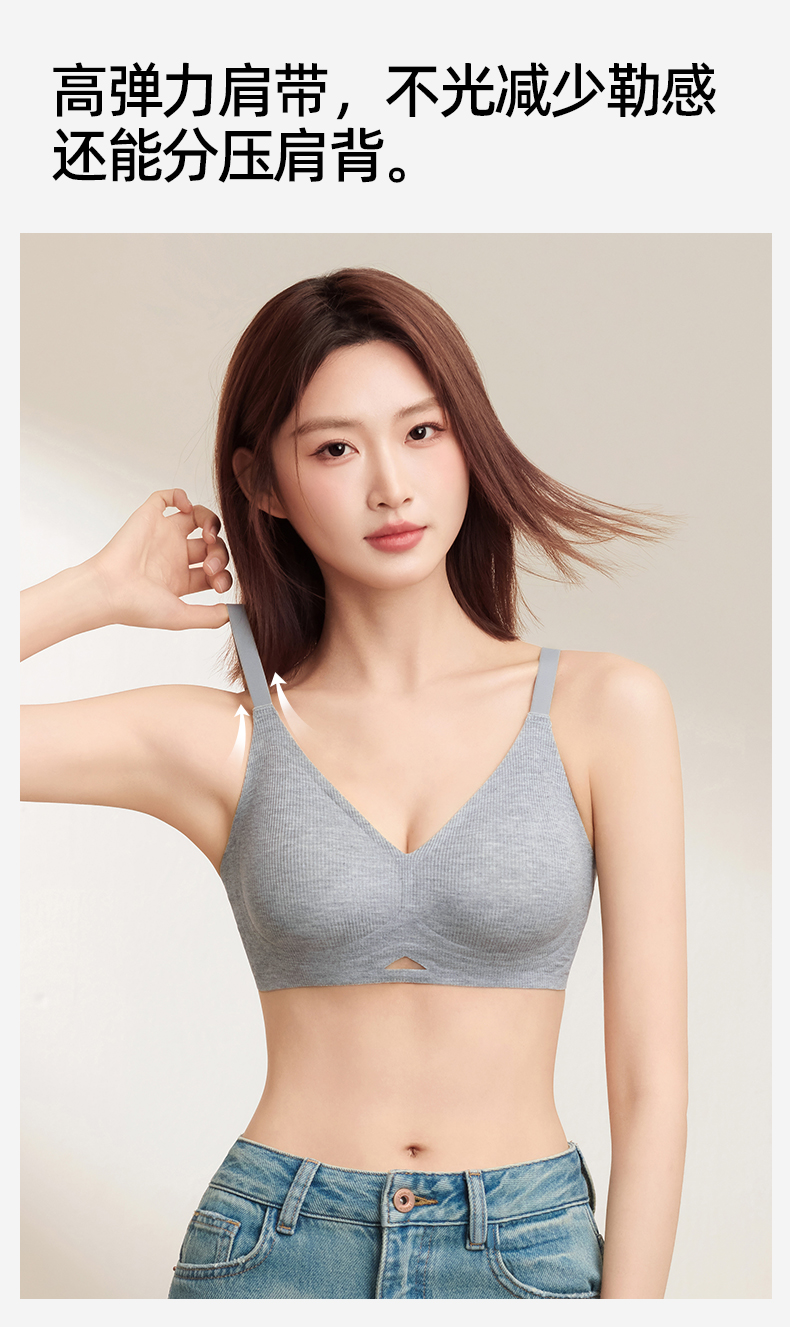熳洁儿 舒适无痕内衣小胸聚拢防下垂螺纹舒适百搭ABC杯轻运动风25261502