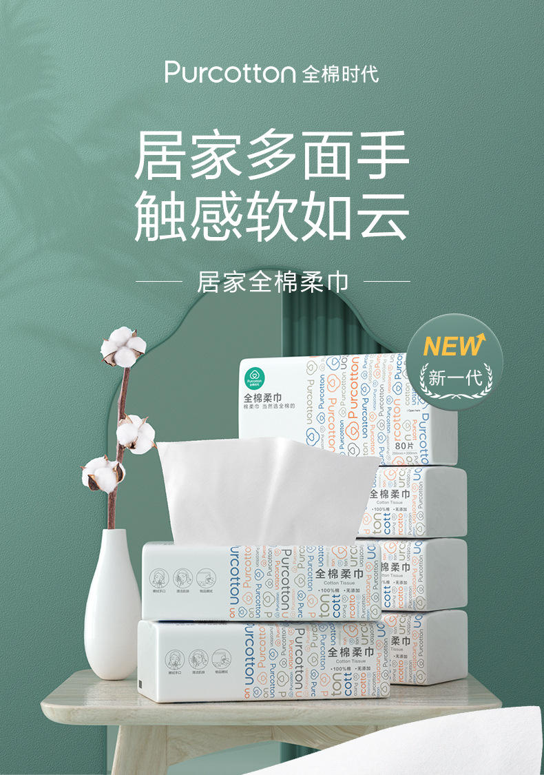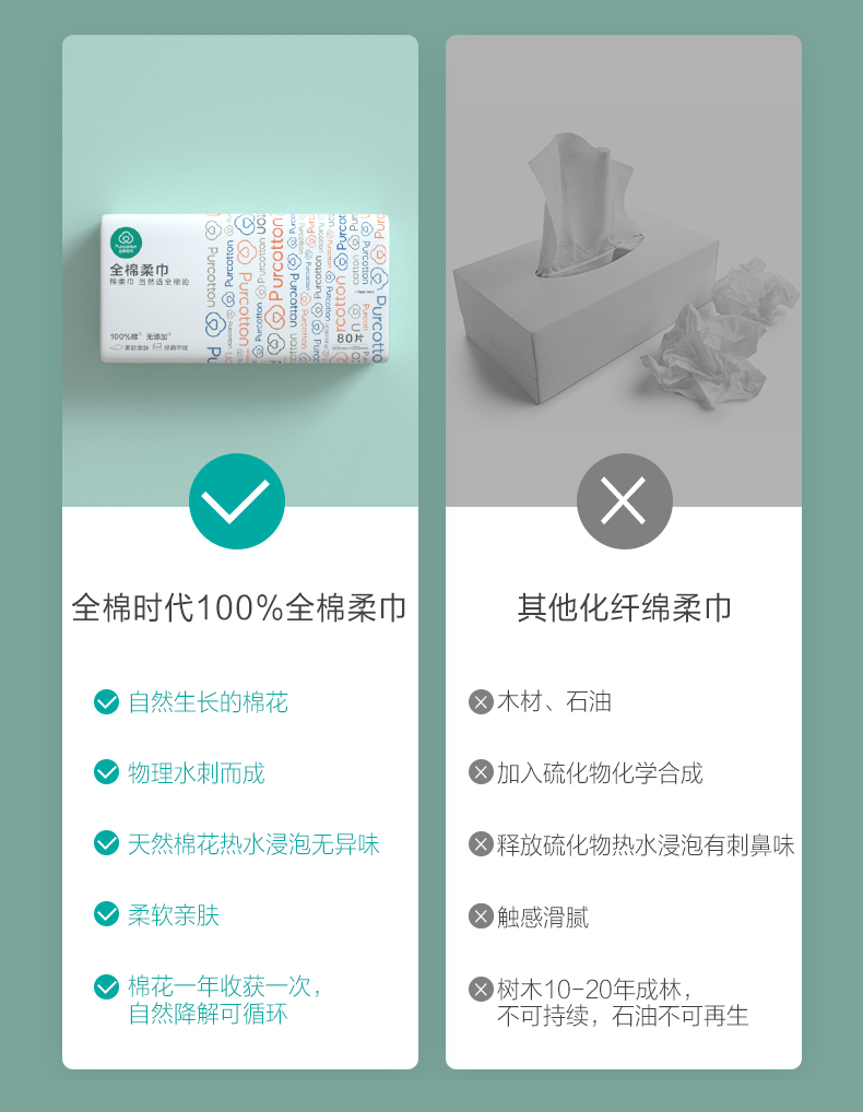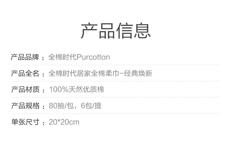 全棉时代 洗脸巾 一次性100%纯棉抽纸巾20×20CM 80片/包*6包