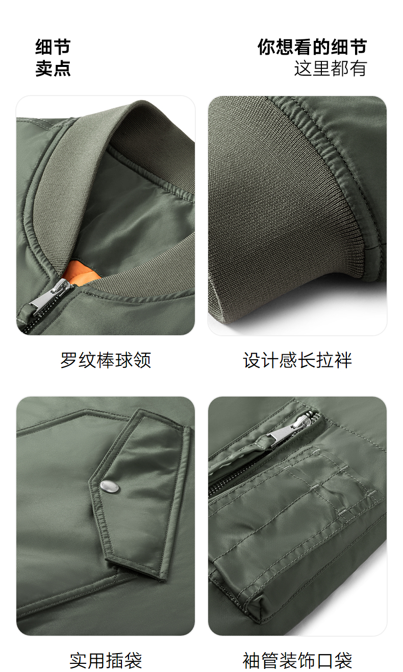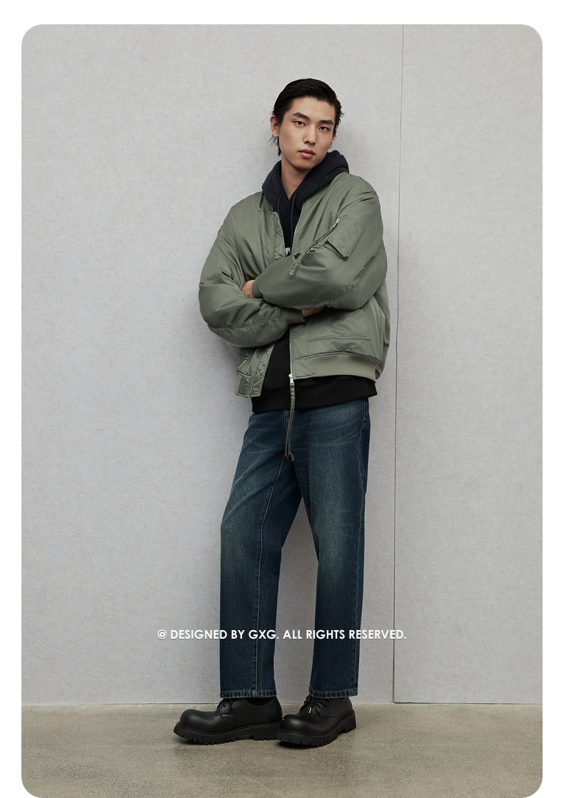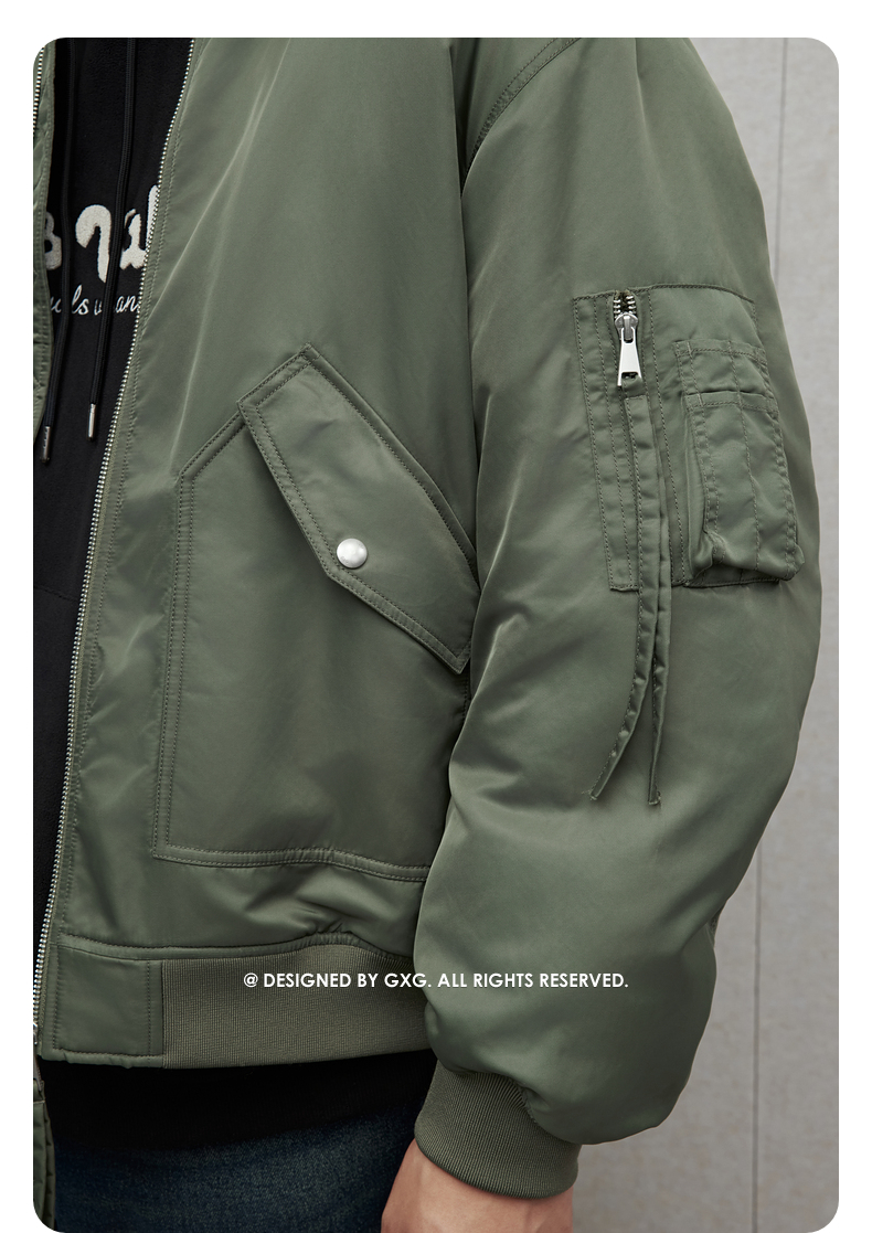 GXG男装 美式飞行员夹克男夹棉保暖夹克棒球领外套 2024冬季热卖
