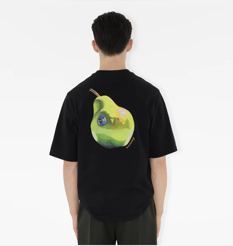 BURBERRY 巴宝莉 男士啤梨印花棉质圆领短袖T恤 黑色 8089099 A1189