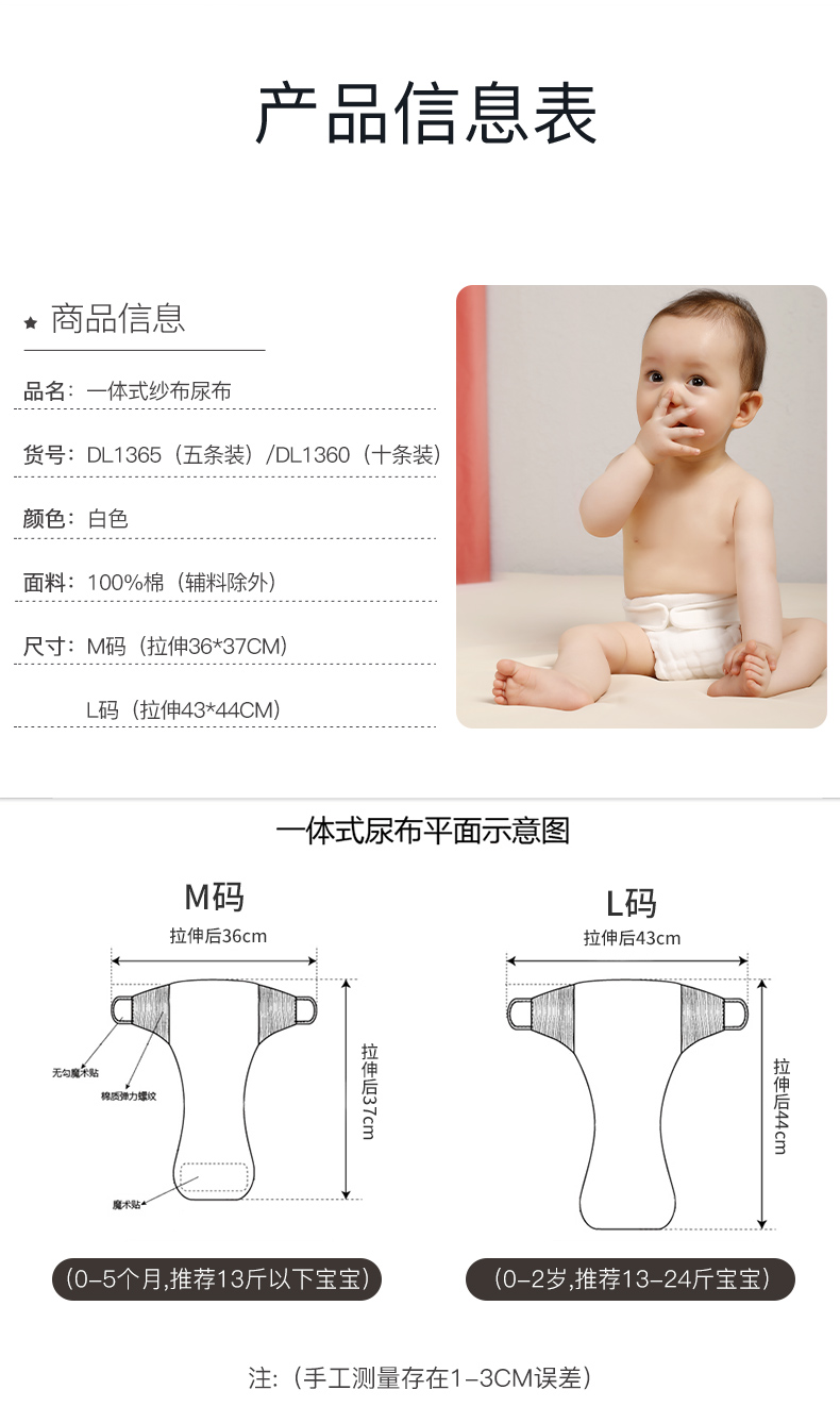 【笑麻麻の蒂乐】【宝宝可水洗 尿布裤】蒂乐尿布纯棉新生婴儿可洗夏天宝宝纱布尿介子芥子兜布戒子裤尿片 自有A