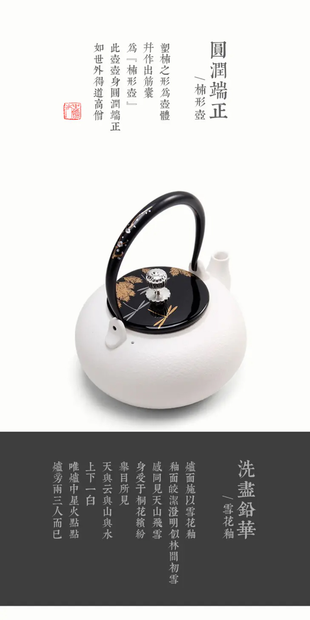 莺歌烧雪花釉柿形陶壶煮茶日式手工烧水壶煮茶壶单壶茶用提梁壶【厂家直发】