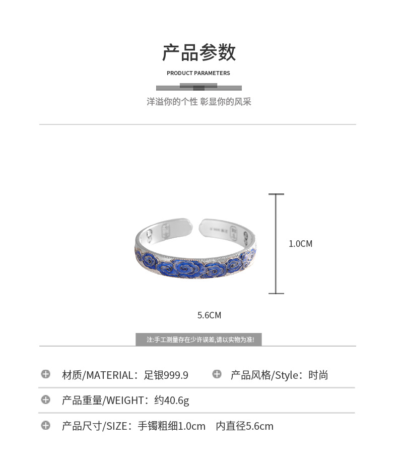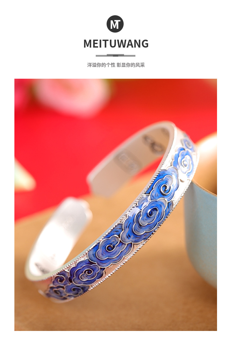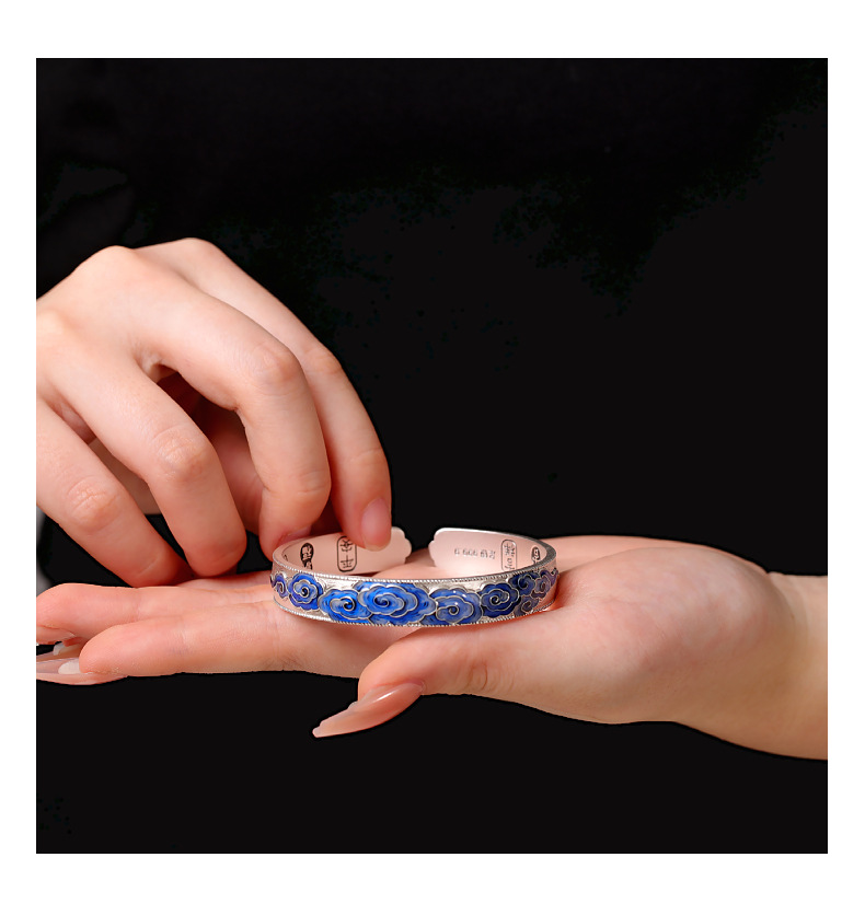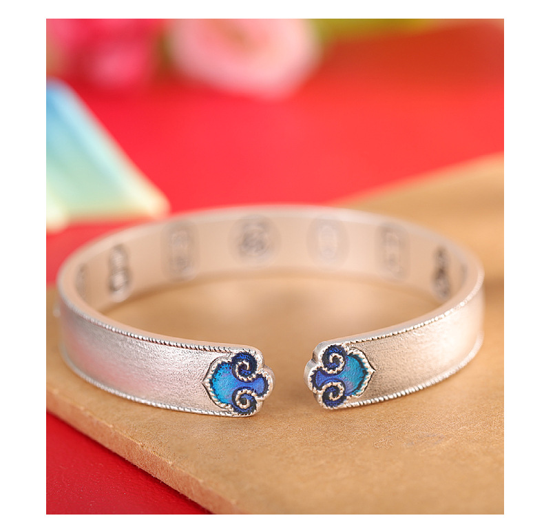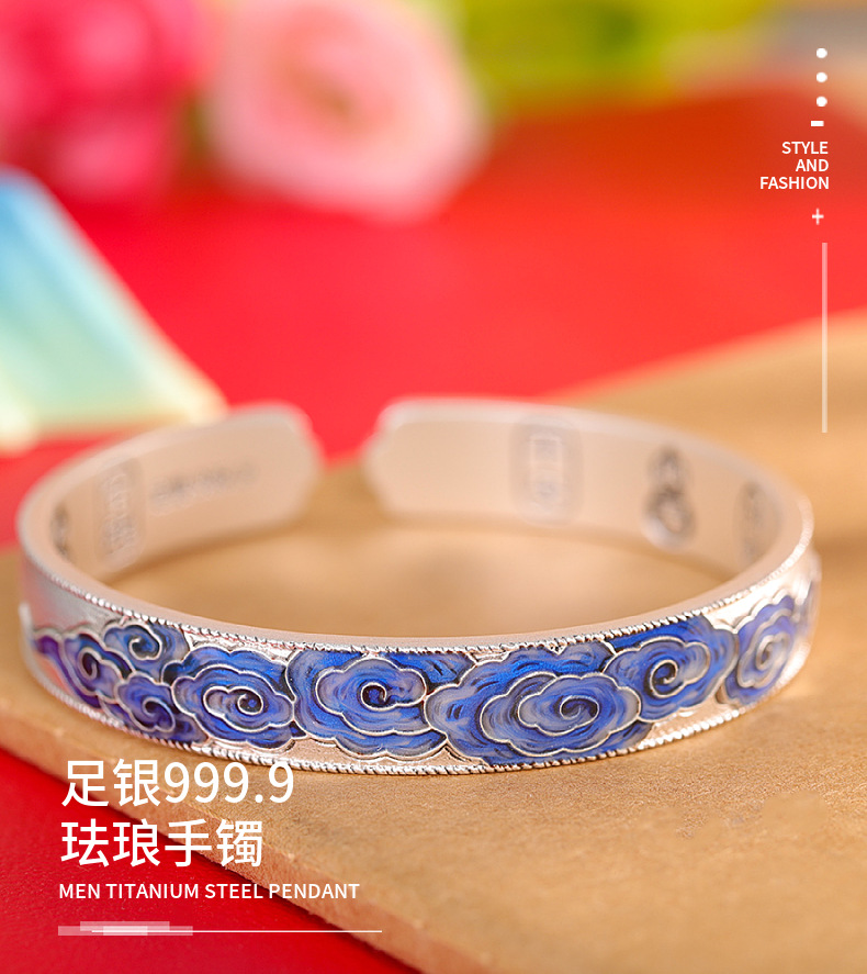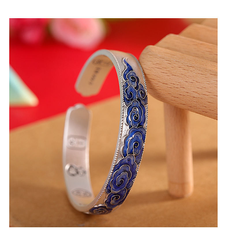 【祥云空濛】足银9999银古法珐琅祥云如意对口开口手镯【RP-SZ73055】