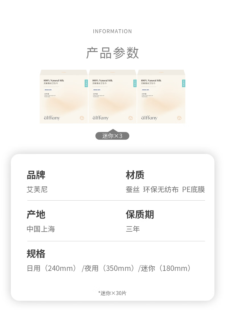 艾芙尼Alffany | 蚕丝整箱日用夜用超薄产后护垫迷你巾