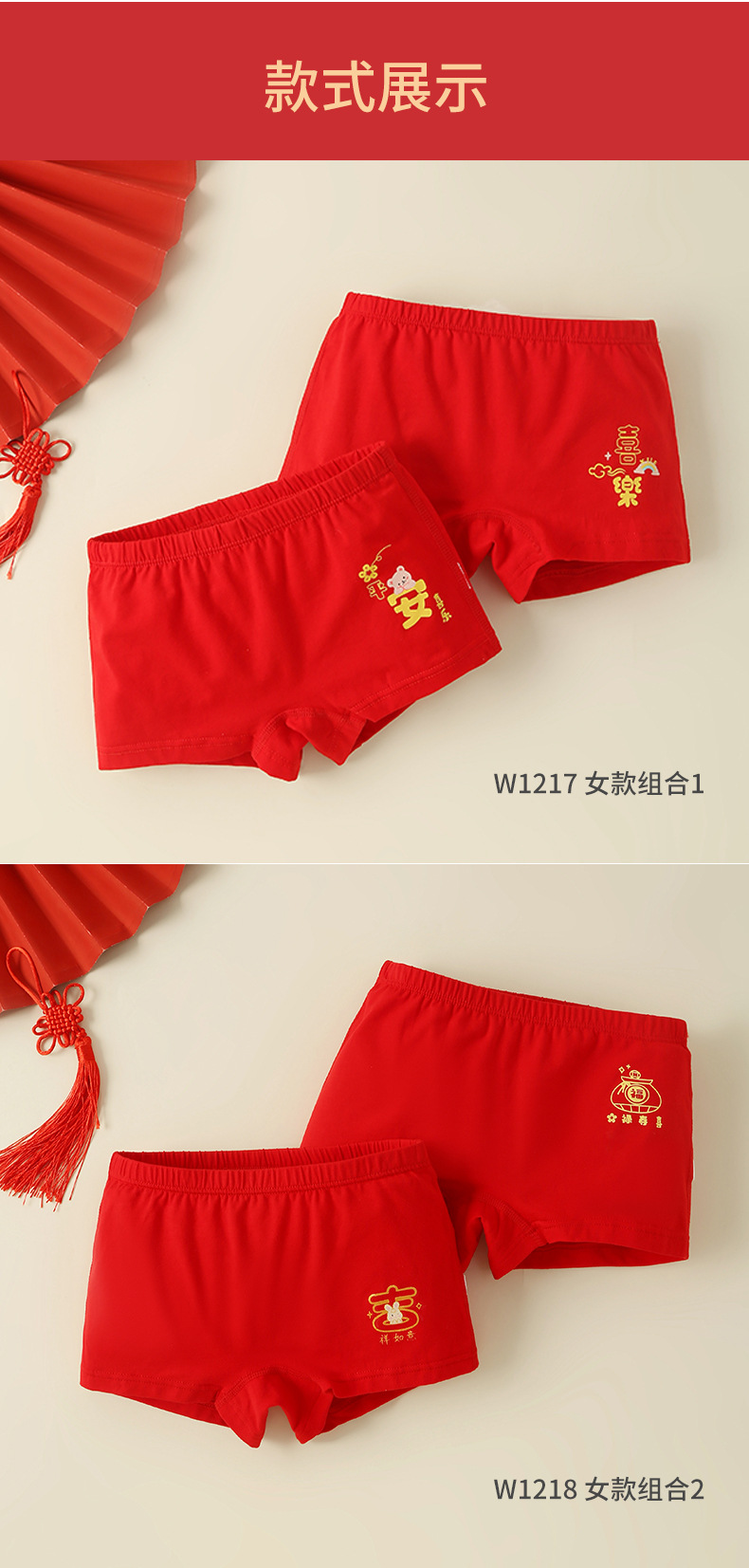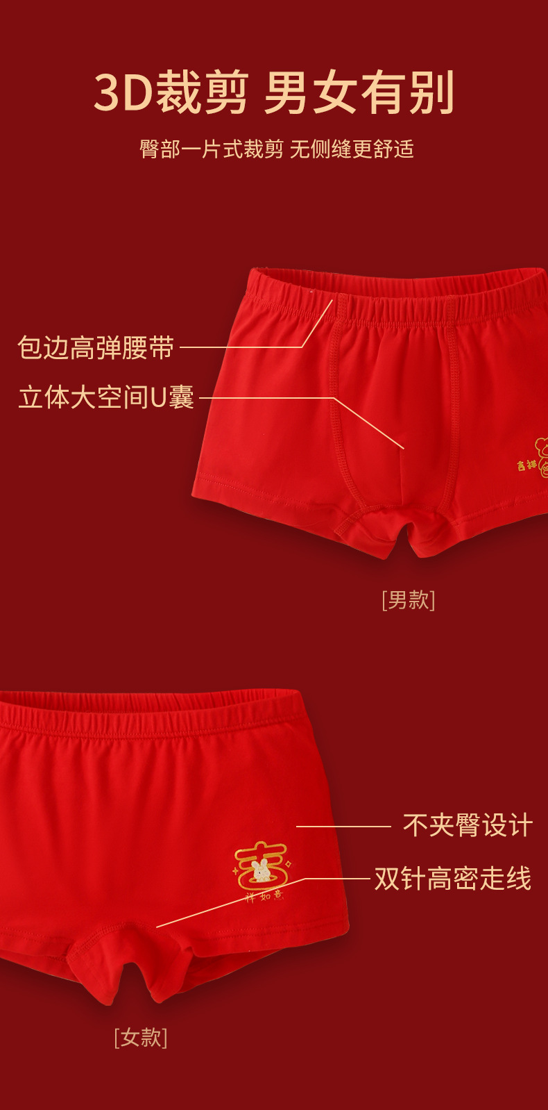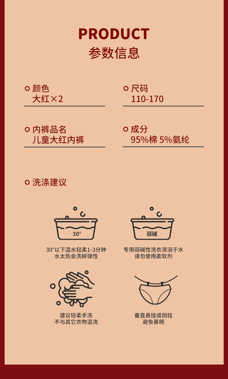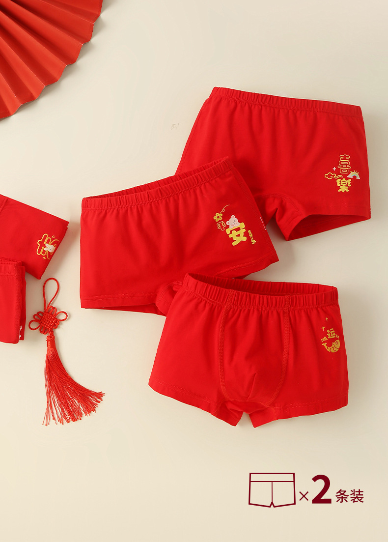 【本命年必备39.9/组】110-170码儿童A类平角内裤2条装本命年中大童13青少年男孩女孩红色纯棉儿童四角12岁聚