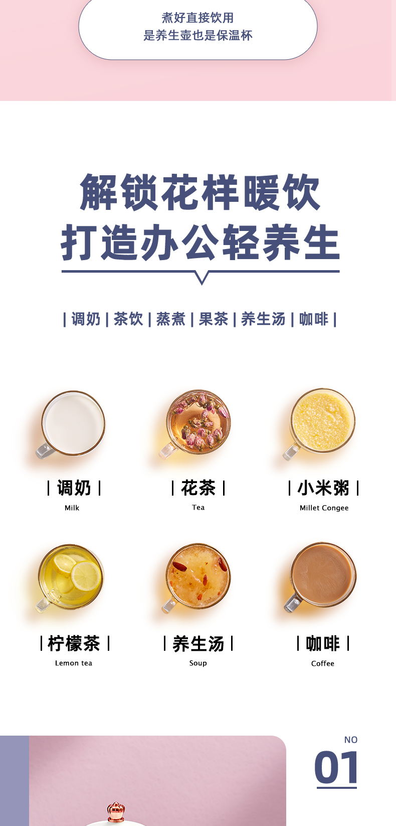 【解锁办公室养生】七彩叮当养生壶一多用可做养生汤/小米粥/调奶/花茶/咖啡三档可调8小时保温
