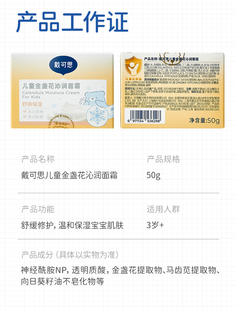 戴可思儿童冰沙面霜凉感降温3-5 ℃舒缓保湿春夏宝宝霜♥