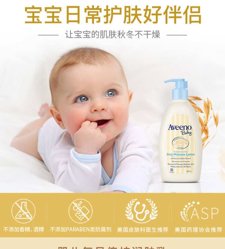 美国Aveenobaby艾惟诺婴儿每日倍护润肤乳(无香型) 354ml