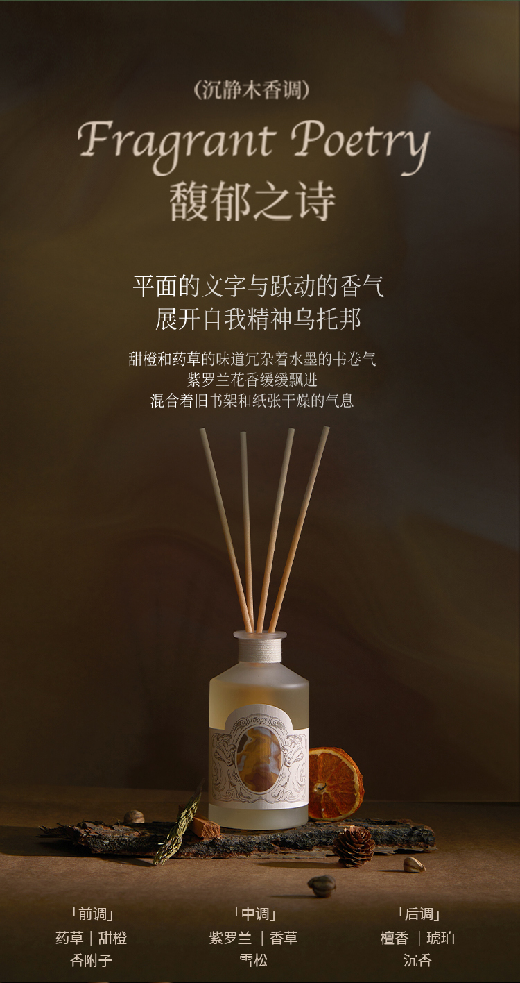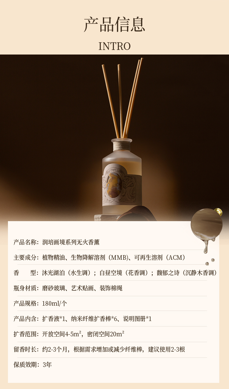 roopy润培画境系列无火香薰180ML 家用持久留香淡香高级卧室客厅 家用室内无烟持久生日仪式