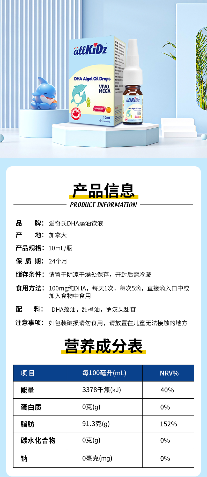 加拿大爱奇氏 藻油DHA饮液 10ml