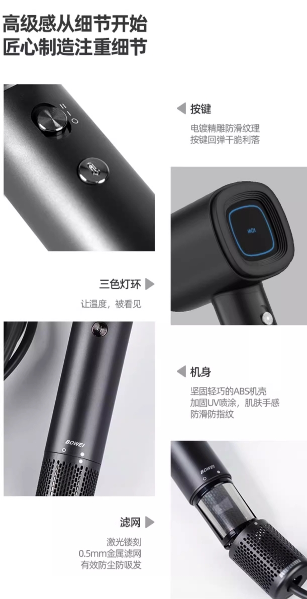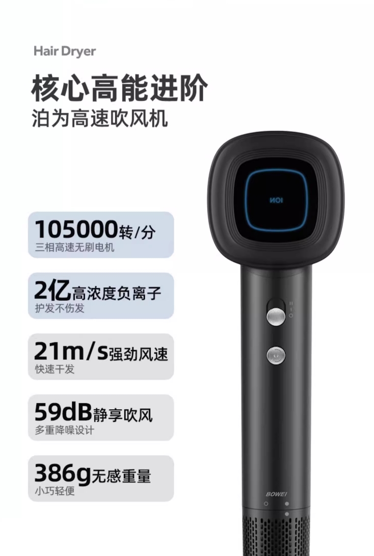 泊为B16高速电吹风机家用负离子恒温护发速干低噪音便携送礼