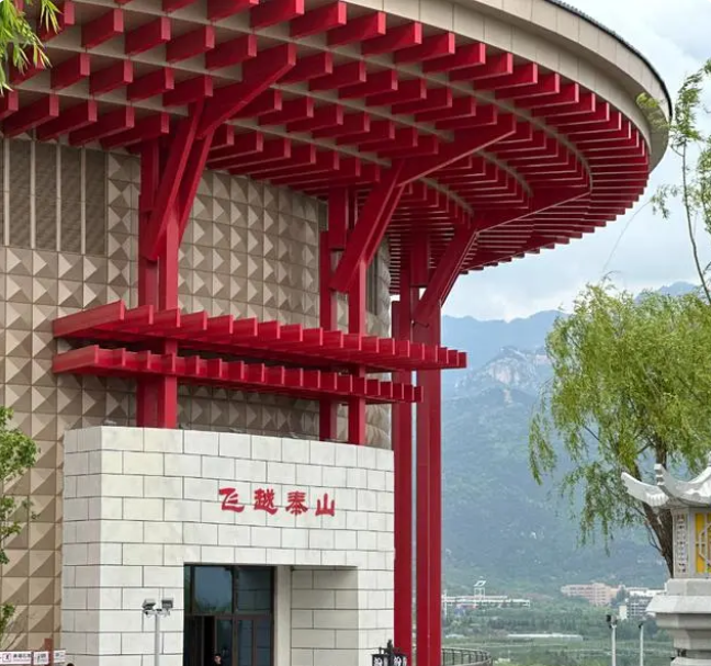 敢当殿是全国最大的集中展示泰山石敢当民俗文化的单体建筑,步入敢当殿,建筑风格汲取唐风建筑的宏伟大气,面积约为1545平方米,寓意泰山高度1545米。在蝴蝶谷,这个通体用玻璃打造的项目,外形酷似蝴蝶幼虫,谷内自然生长着各类绿化植物,是集展览、体验、科教于一体的蝴蝶文化主题场馆。