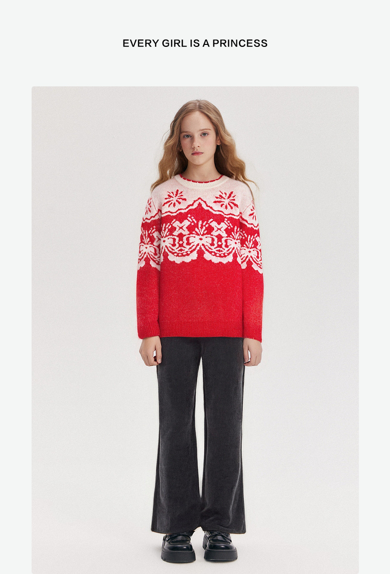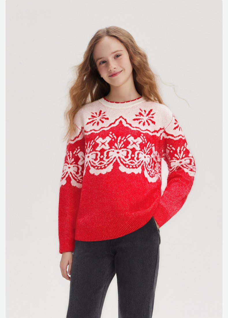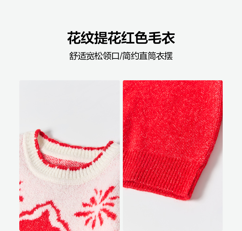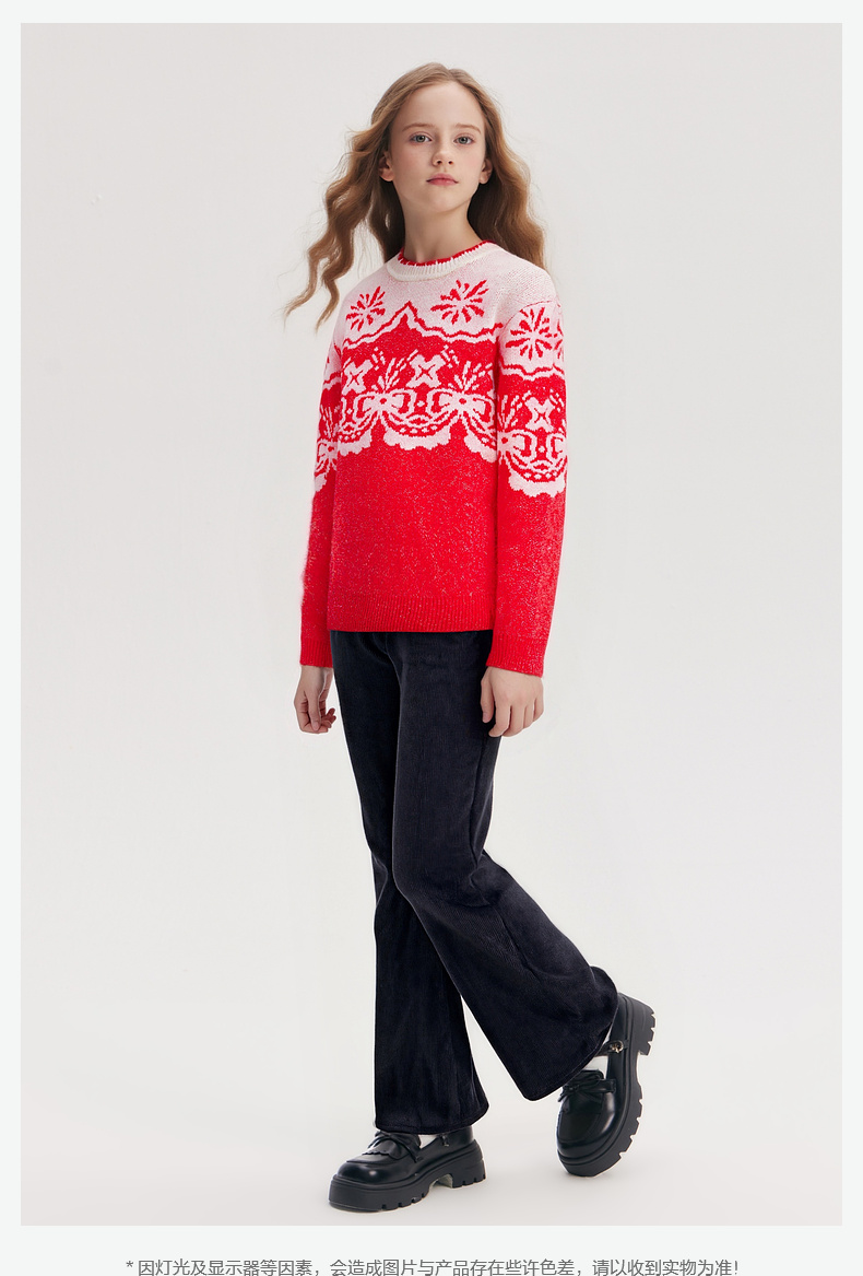 笛莎Deesha 童装女童毛衣2025冬新款花纹提花红色毛衣