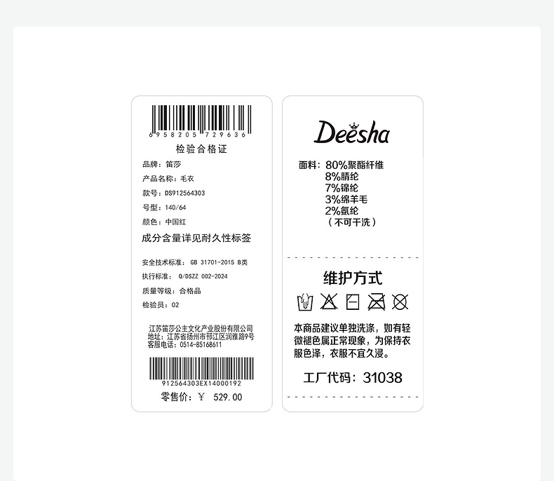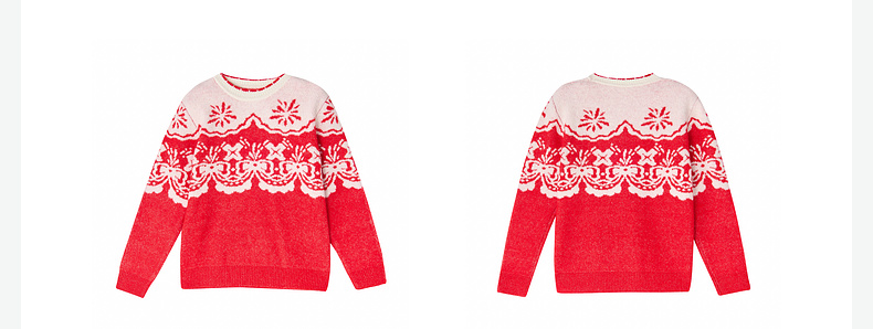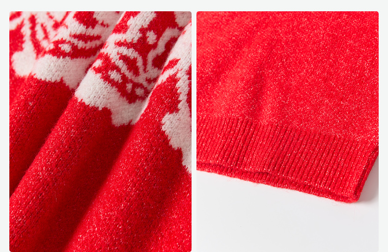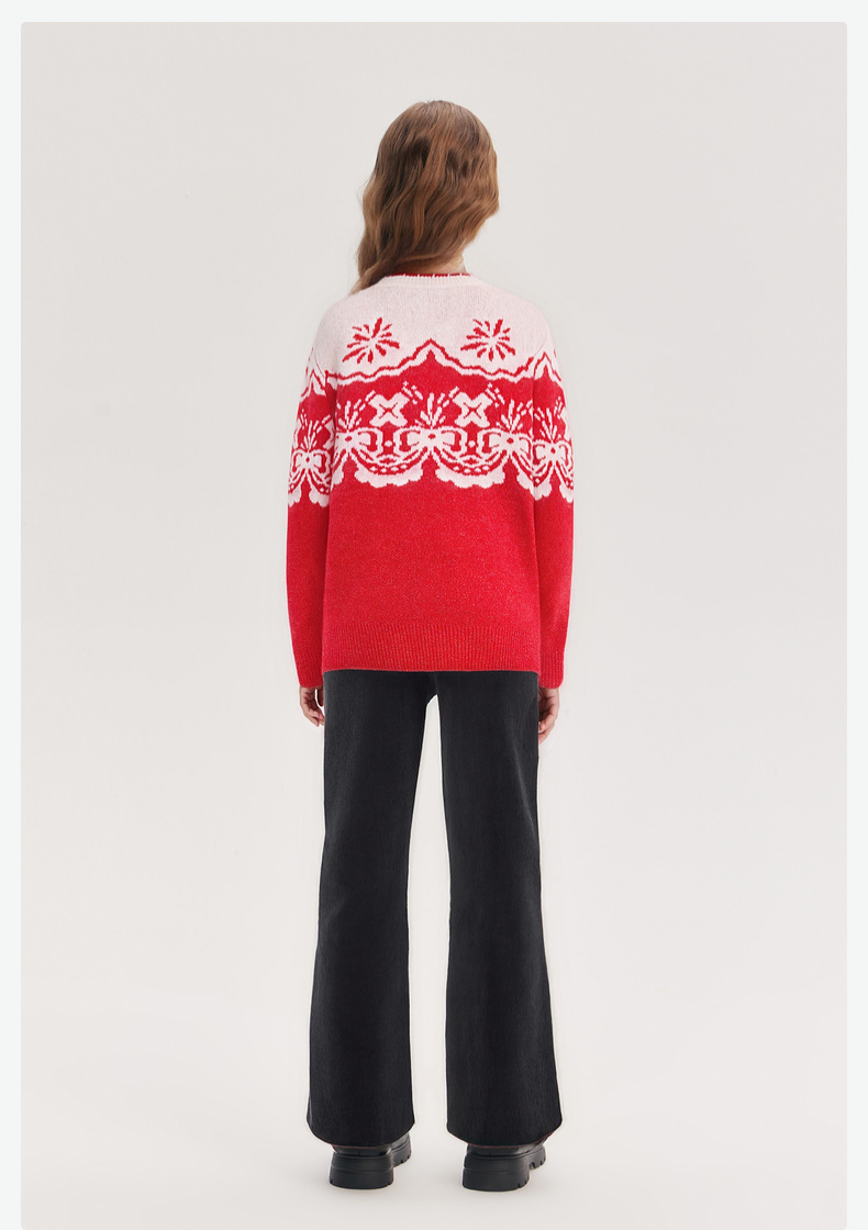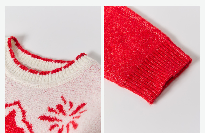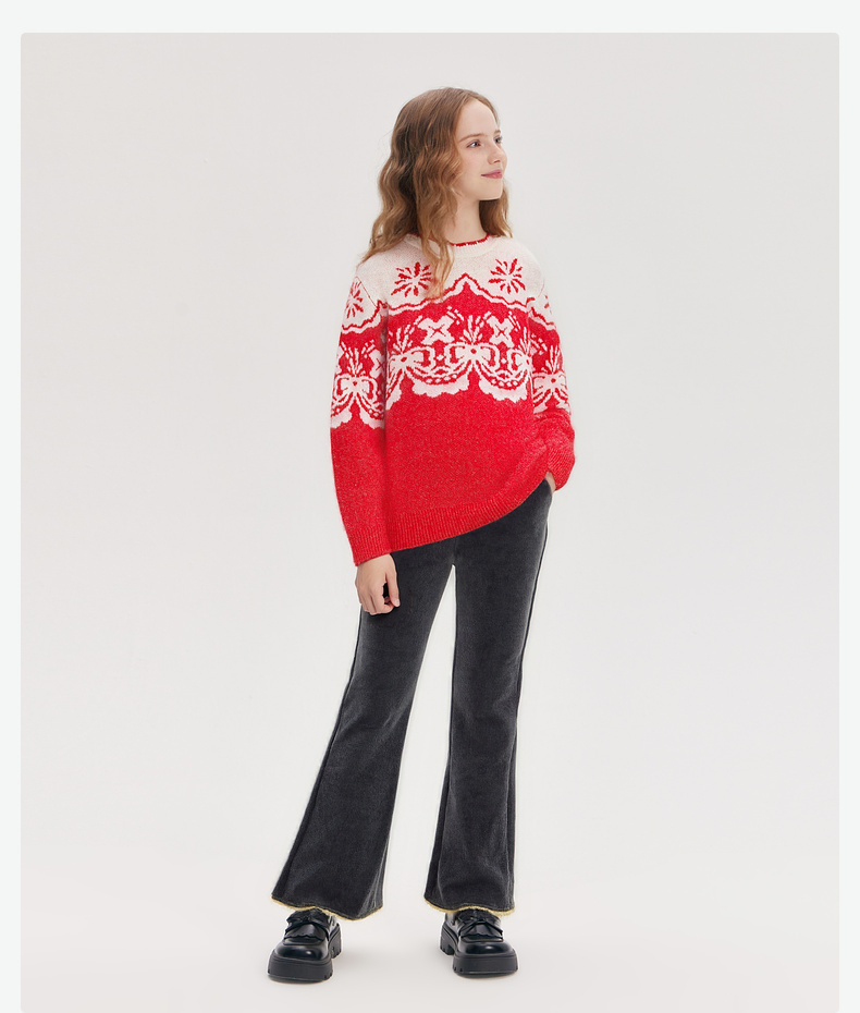 笛莎Deesha 童装女童毛衣2025冬新款花纹提花红色毛衣