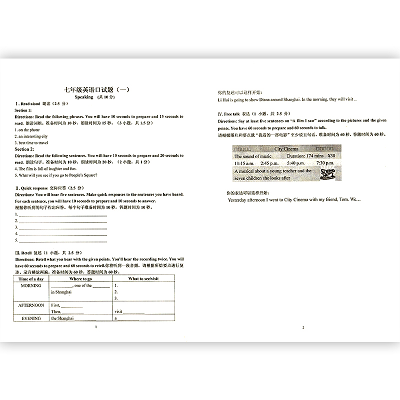 2022年yle英语七年级下n版英语综合技能测试七年级下册7年级下第二学期