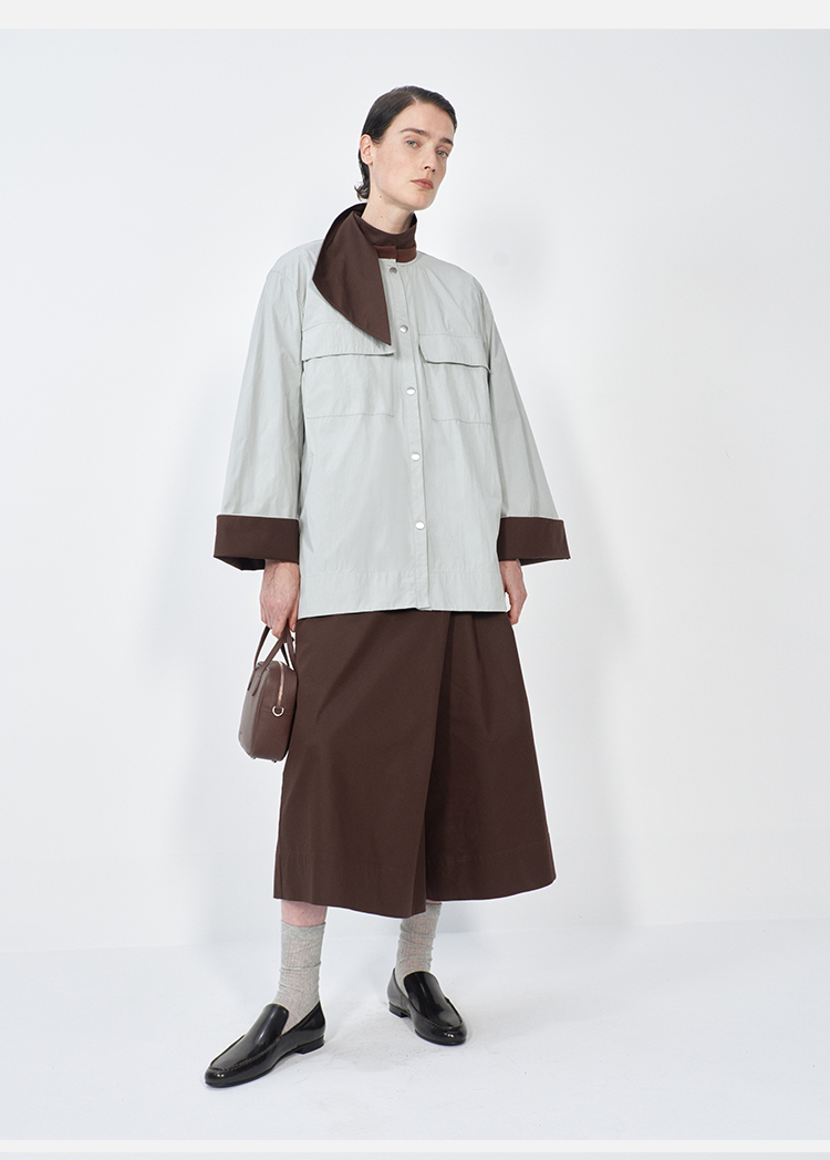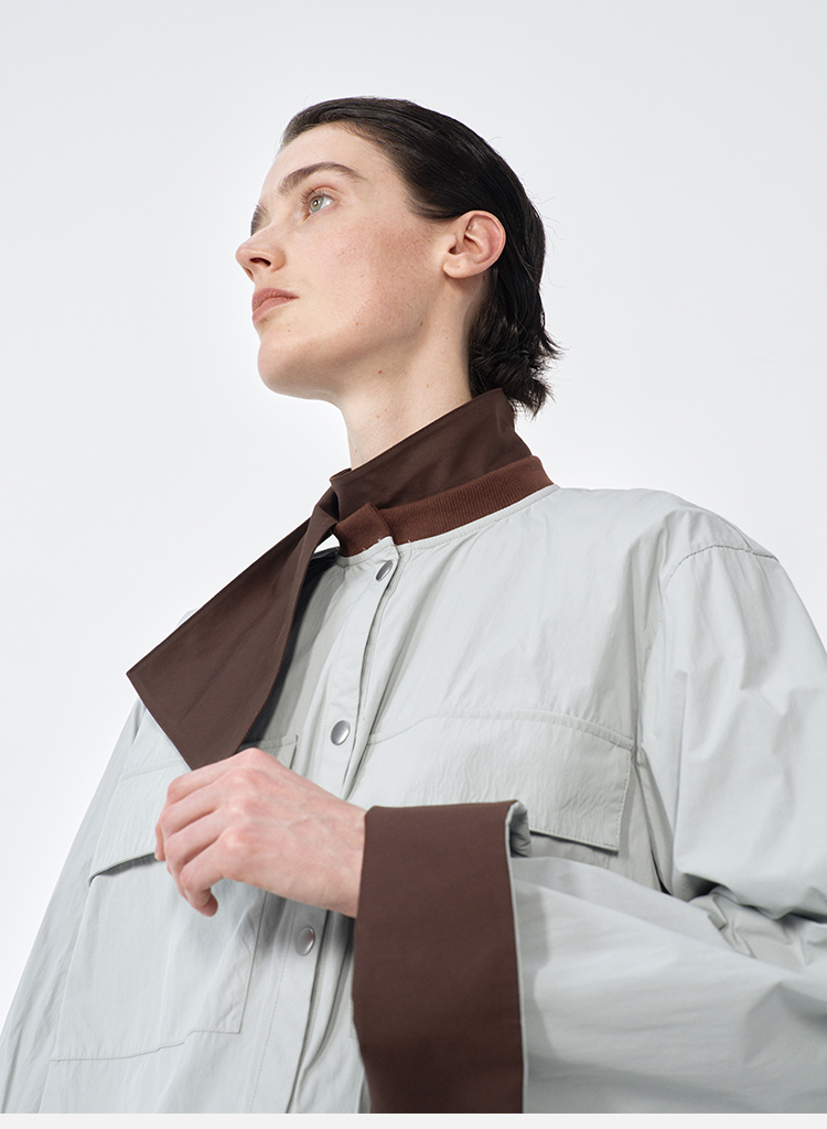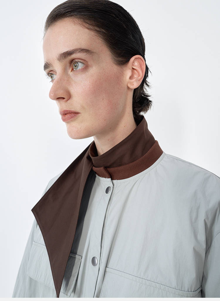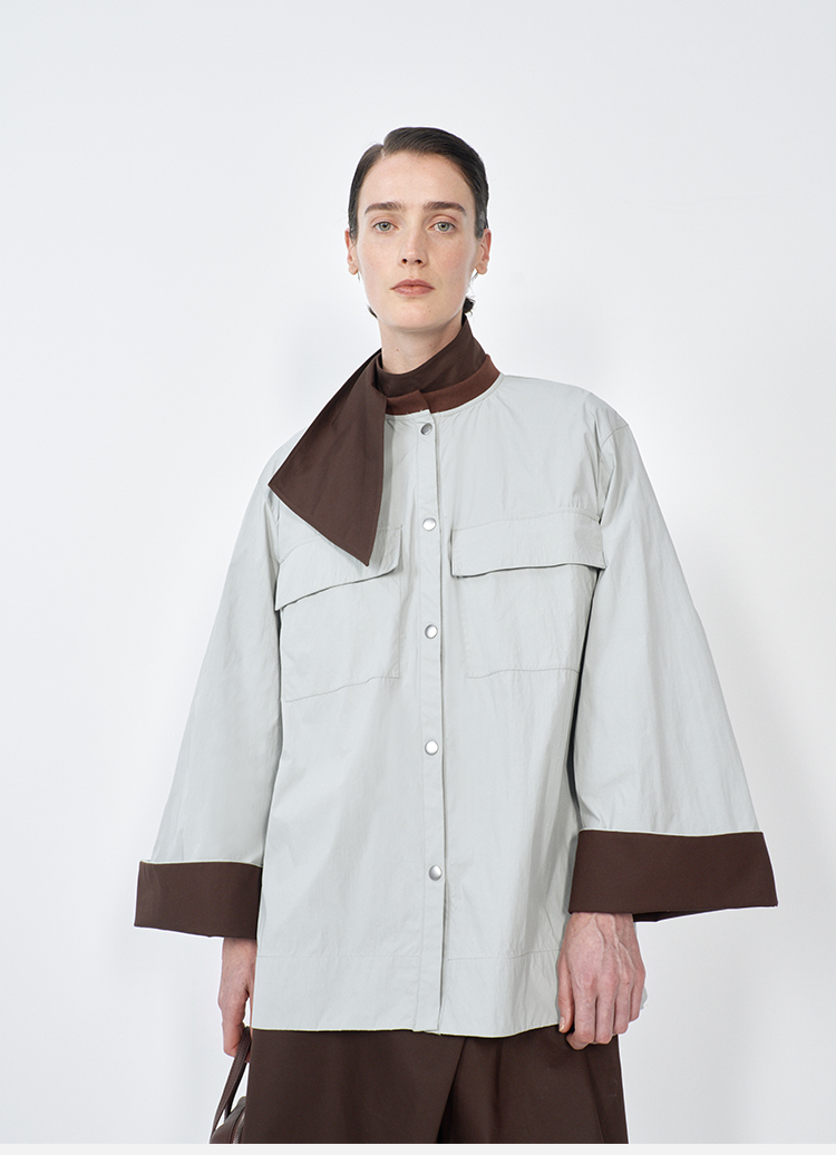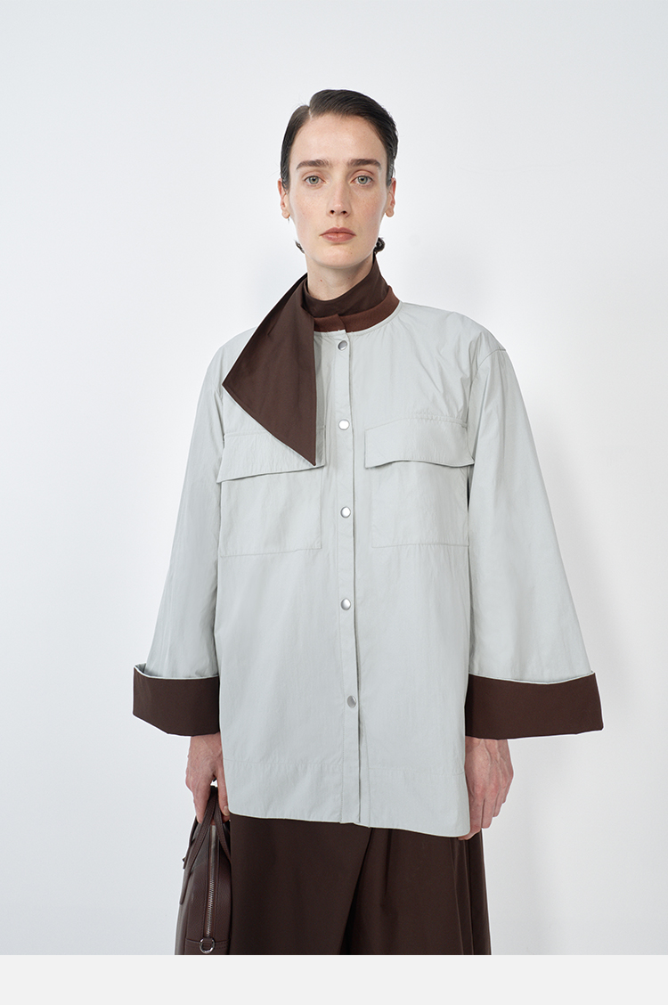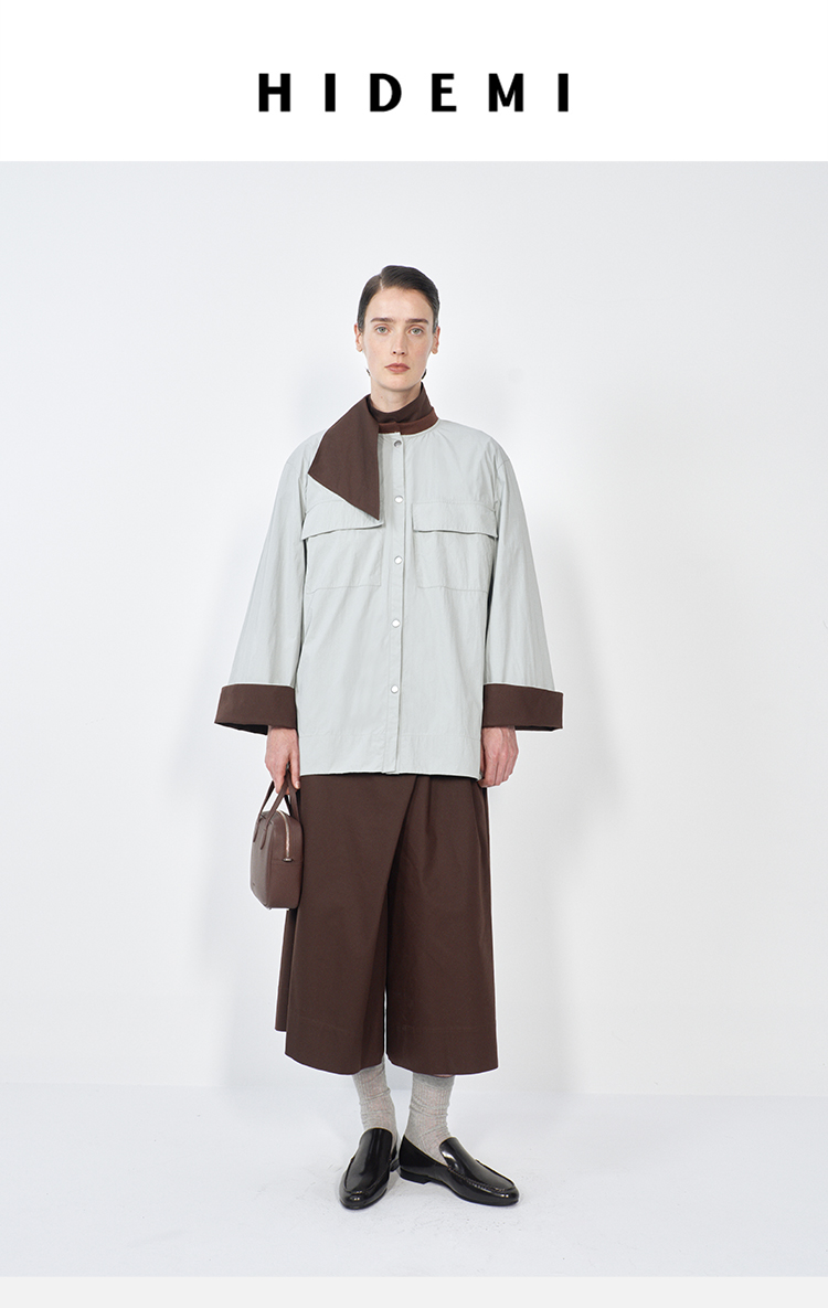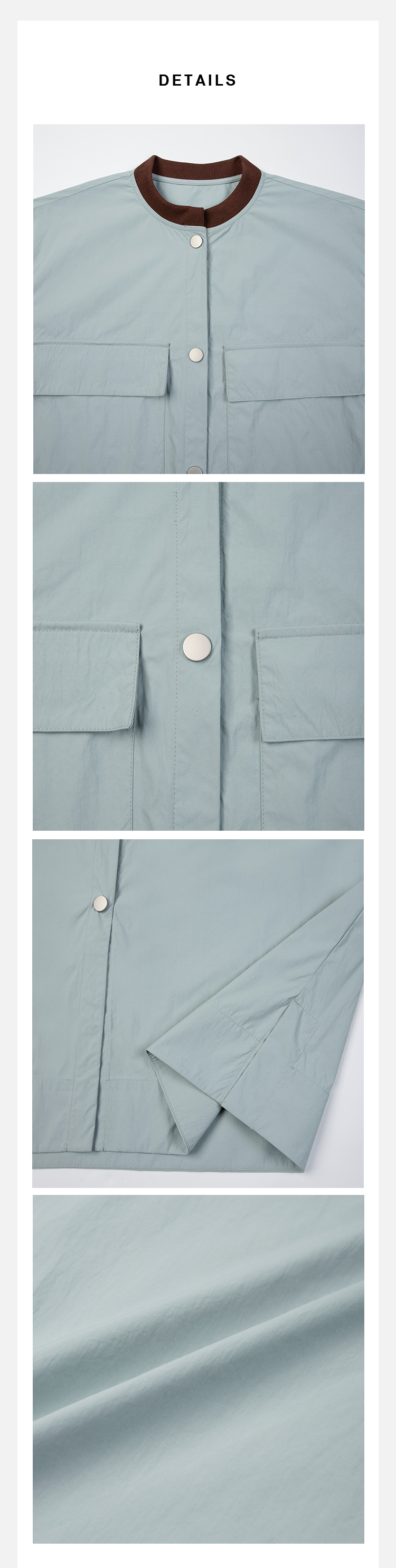 HIDEMI冰绿撞色针织领大口袋短夹克