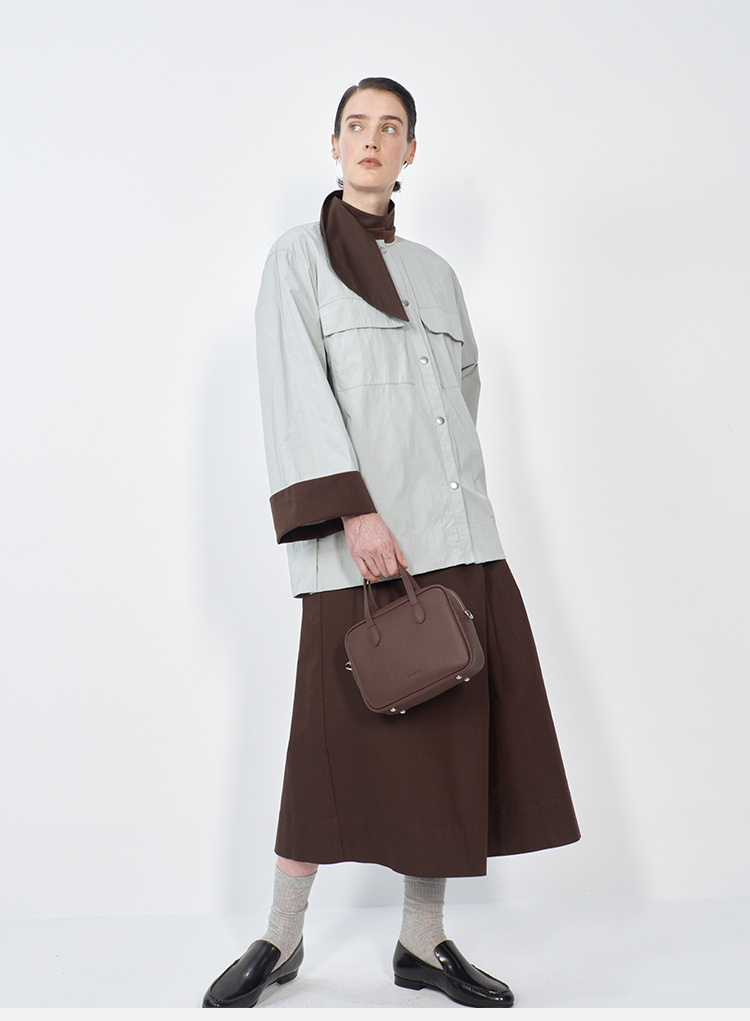 HIDEMI本期必入拉链褶皱廓形衬衫 黑色/白色