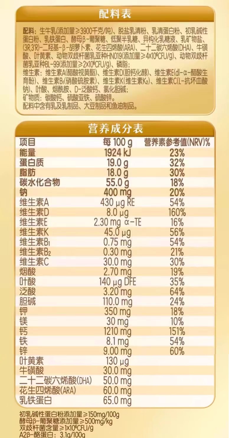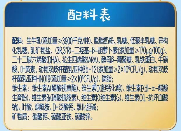 5.榛高未添加任何益生元;铂金装添加有单一“低聚半乳糖”但在成分表中未明确添加含量。