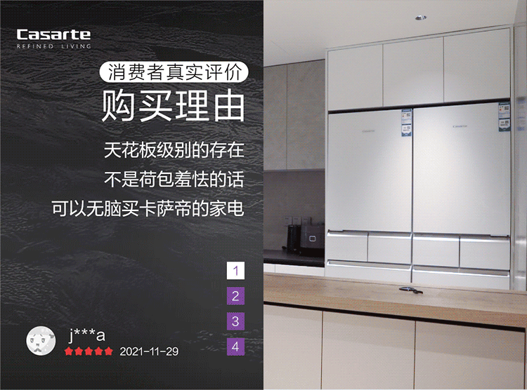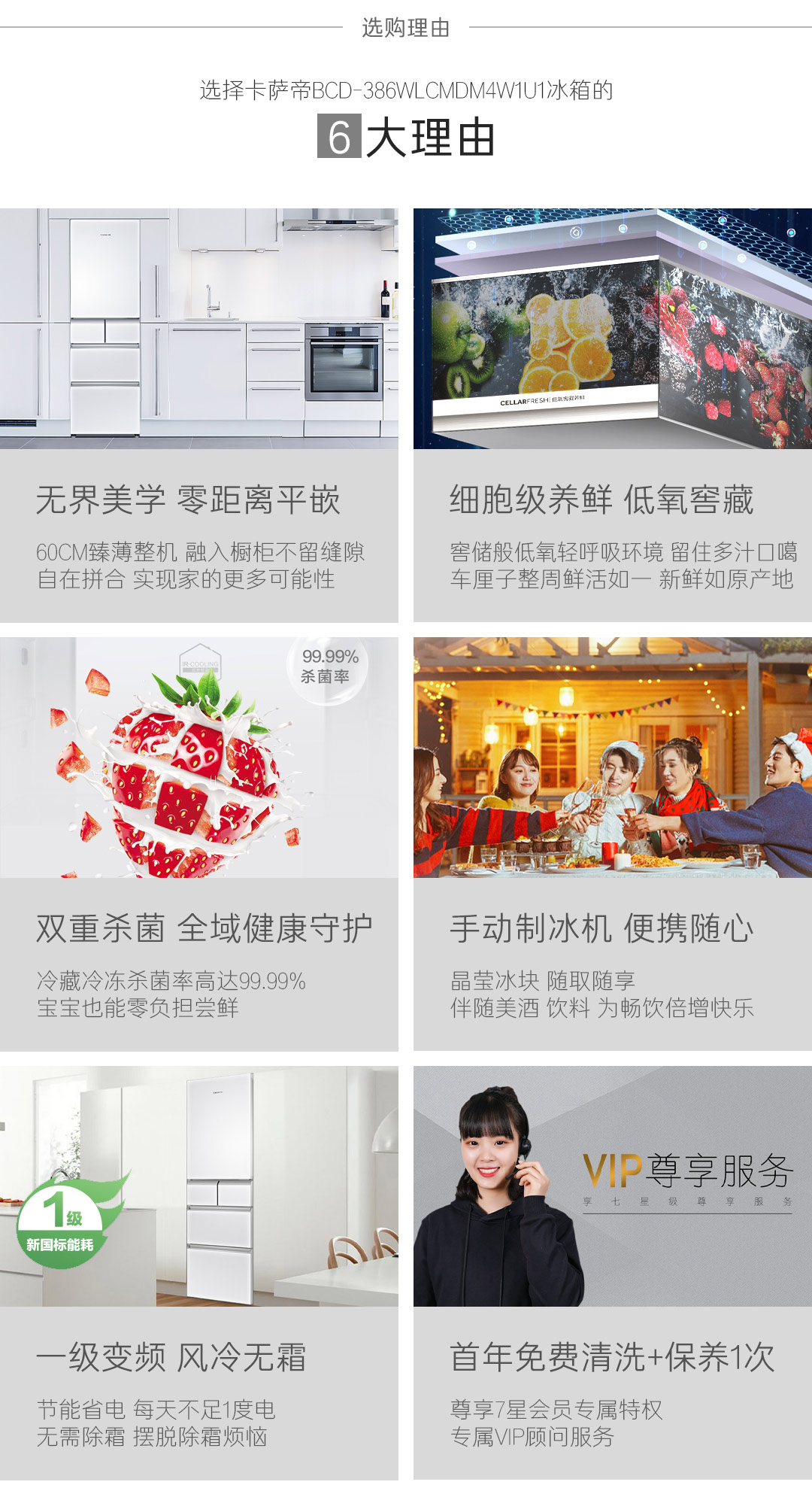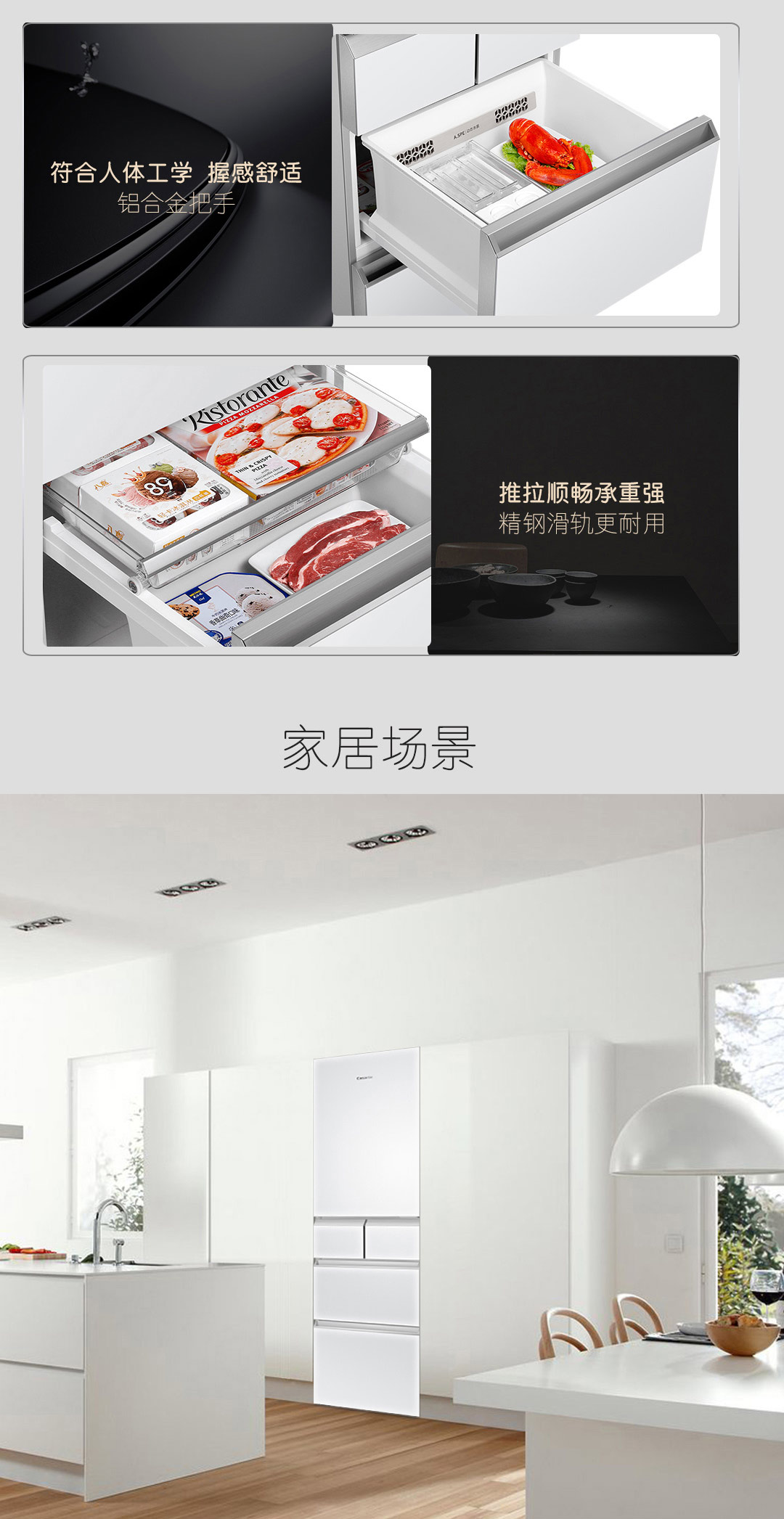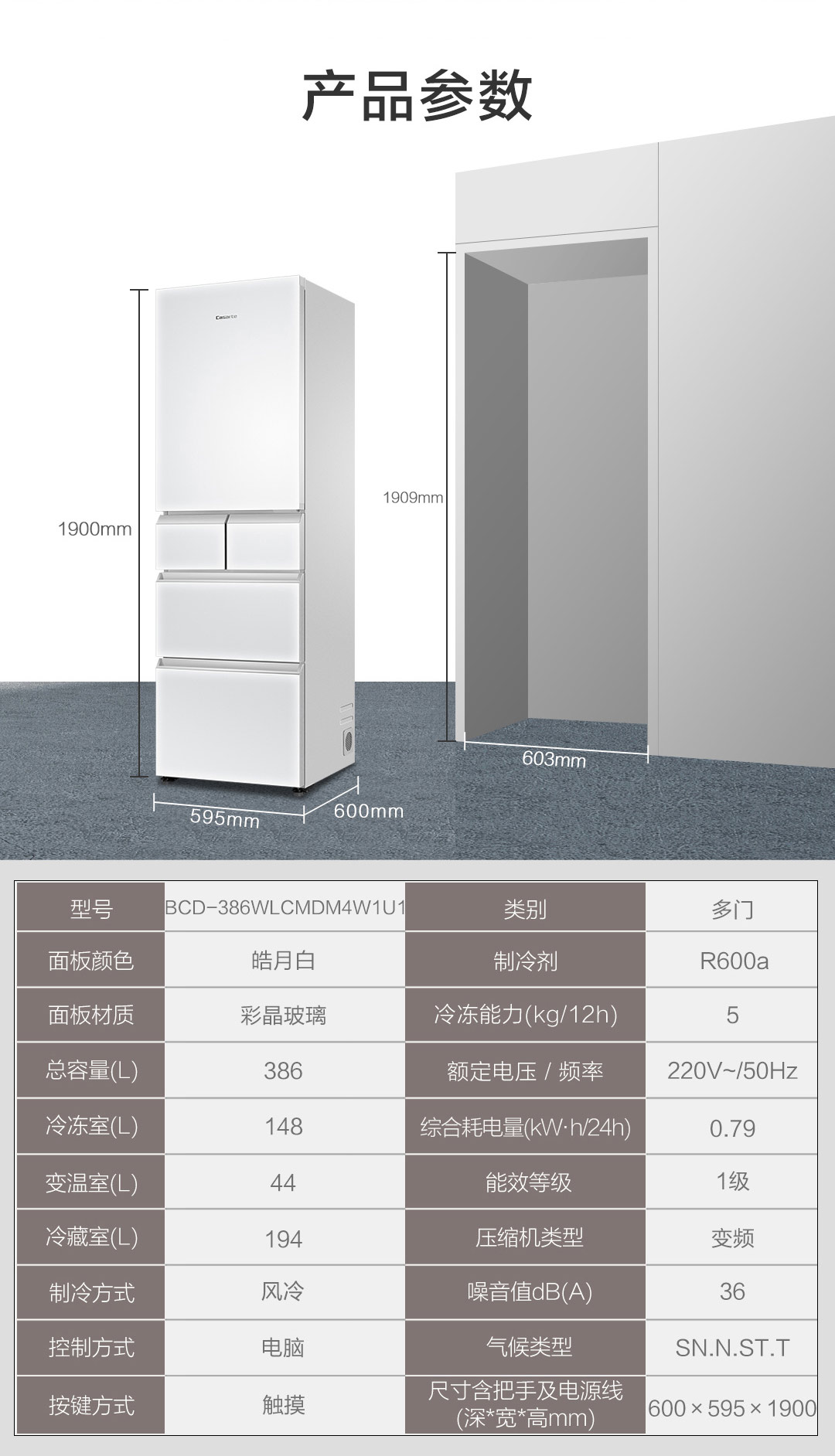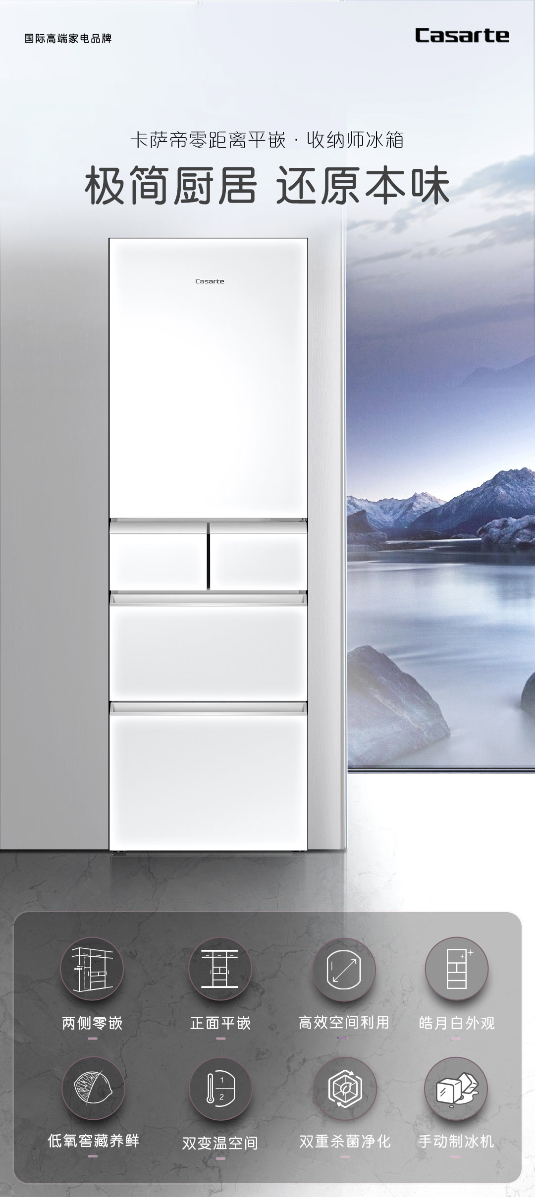 卡萨帝(Casarte)纯白系列 386升多门 零距离平嵌 收纳师 家用冰箱 一级能效 无霜变频 BCD-386WLCMDM4W1U1