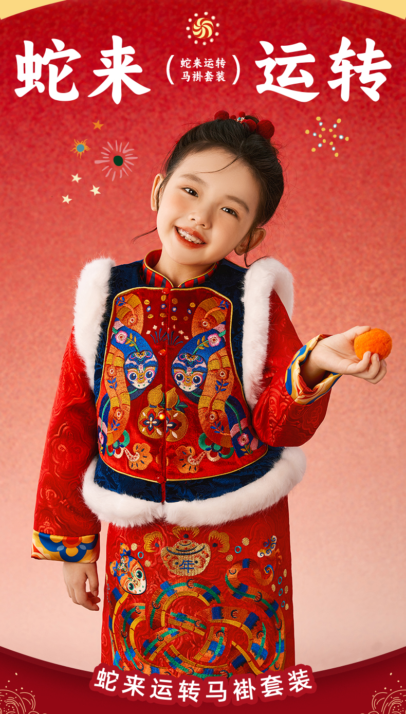 年衣儿童毛衣针织衫冬新款打底衫男女童毛衫生肖年服本命年羊毛衫蛇来运转毛衣+唐装+裤子+唐装套装