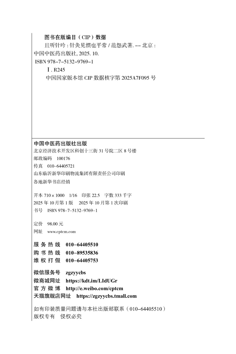 书名:且听针吟 针灸见惯也平常