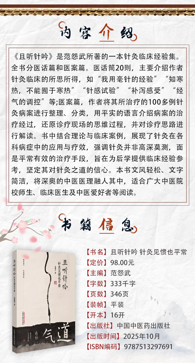 且听针吟 针灸见惯也平常 范怨武 著 书中结合理论与临床案例 展现了针灸在各科病症中的应用与疗效9787513297691中国中医药出版社