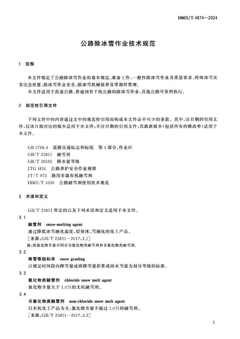 公路除冰雪作业技术规范(DB65/T 4874—2024 )