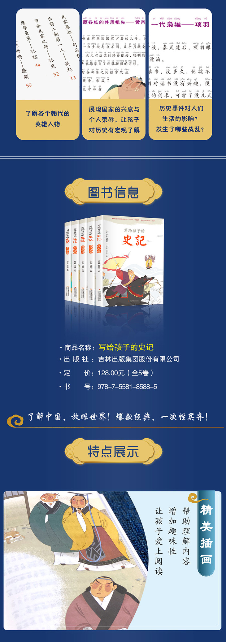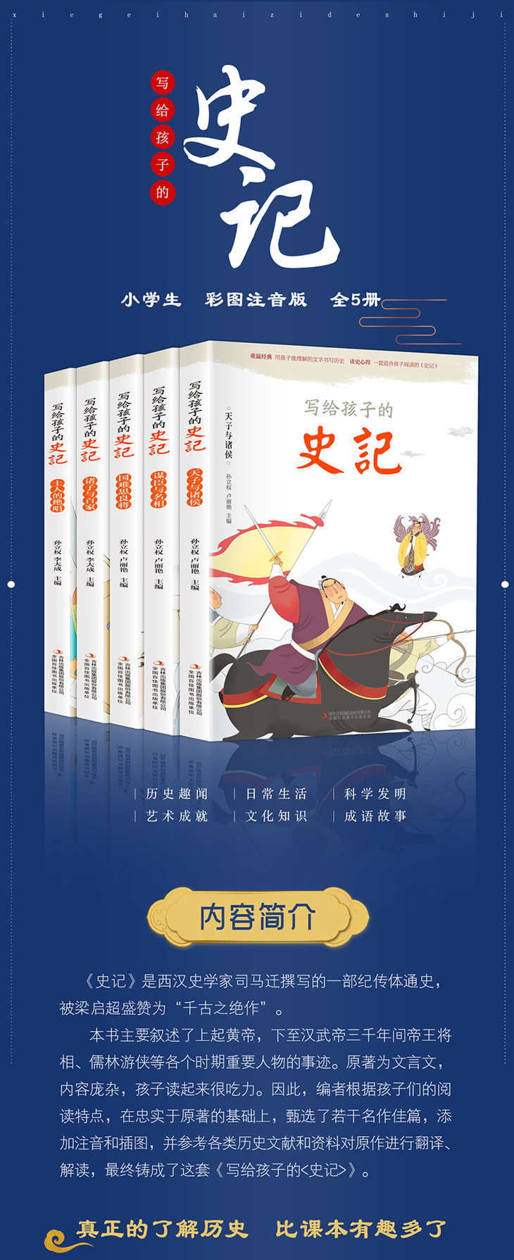 写给孩子的史记全套(礼品装 全5册)注音版中国历史故事集正版小学生课外阅读书籍一二三年级必读经典书目少年读史记青少年版6-8岁儿童文学读物