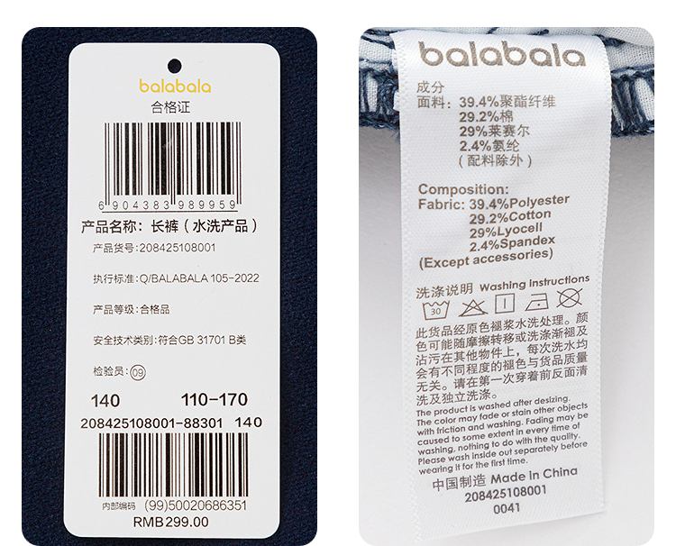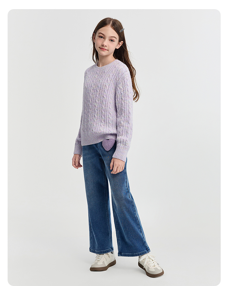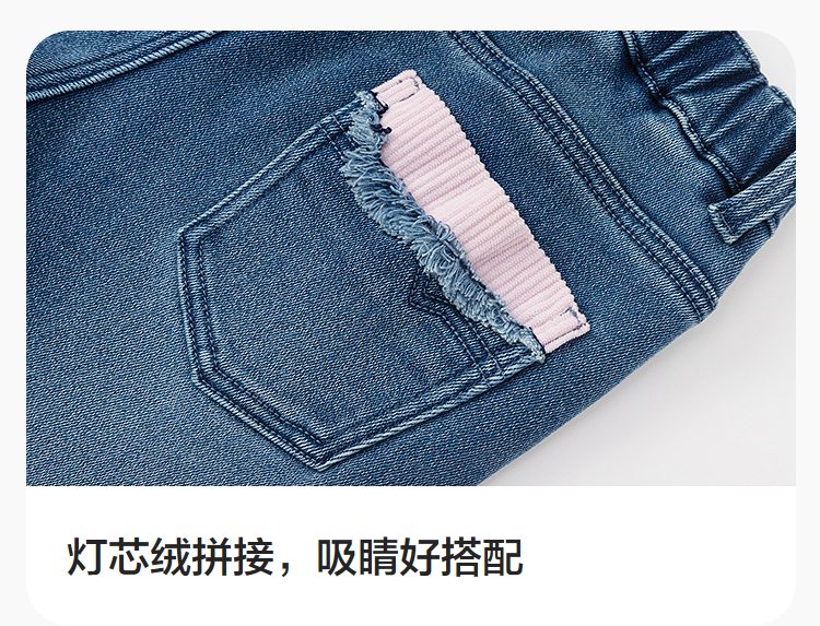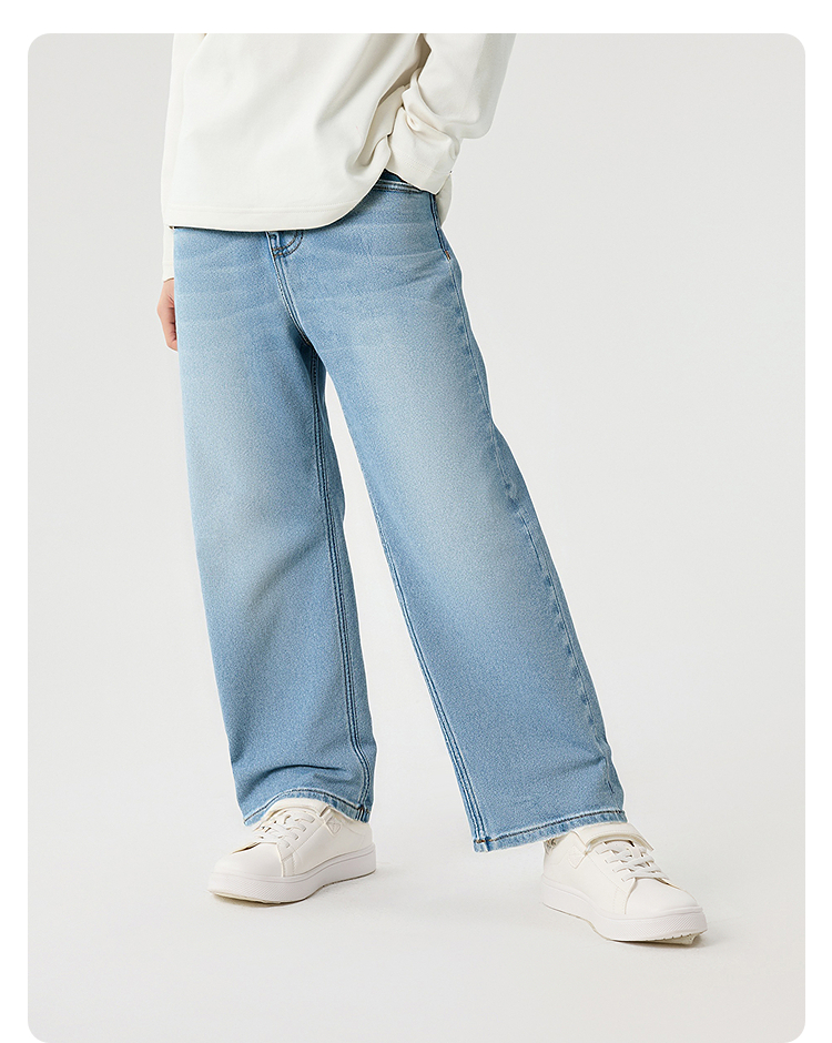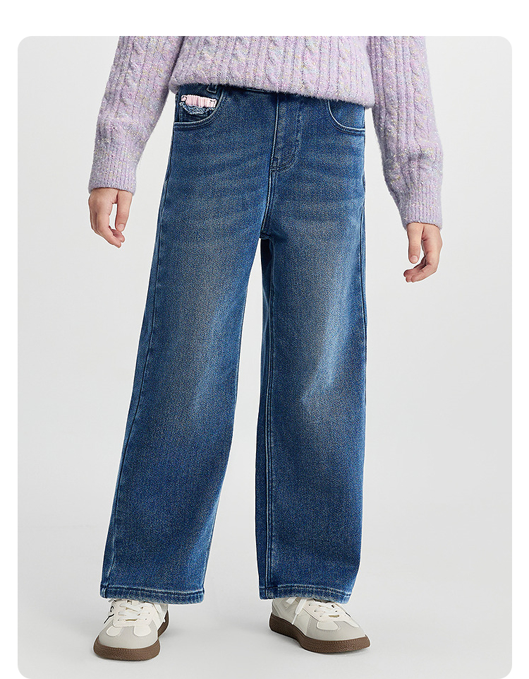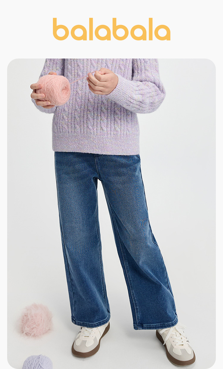 巴拉巴拉balaOne童装儿童裤子女童冬加绒牛仔长裤2025新款直筒裤