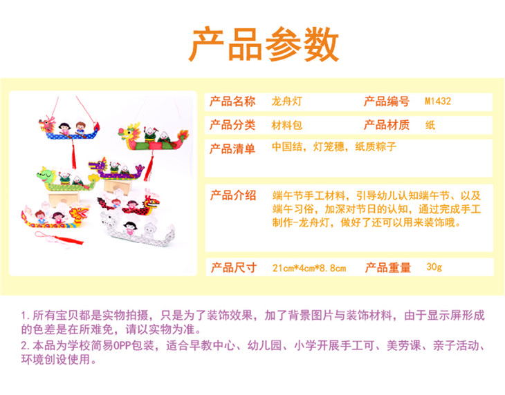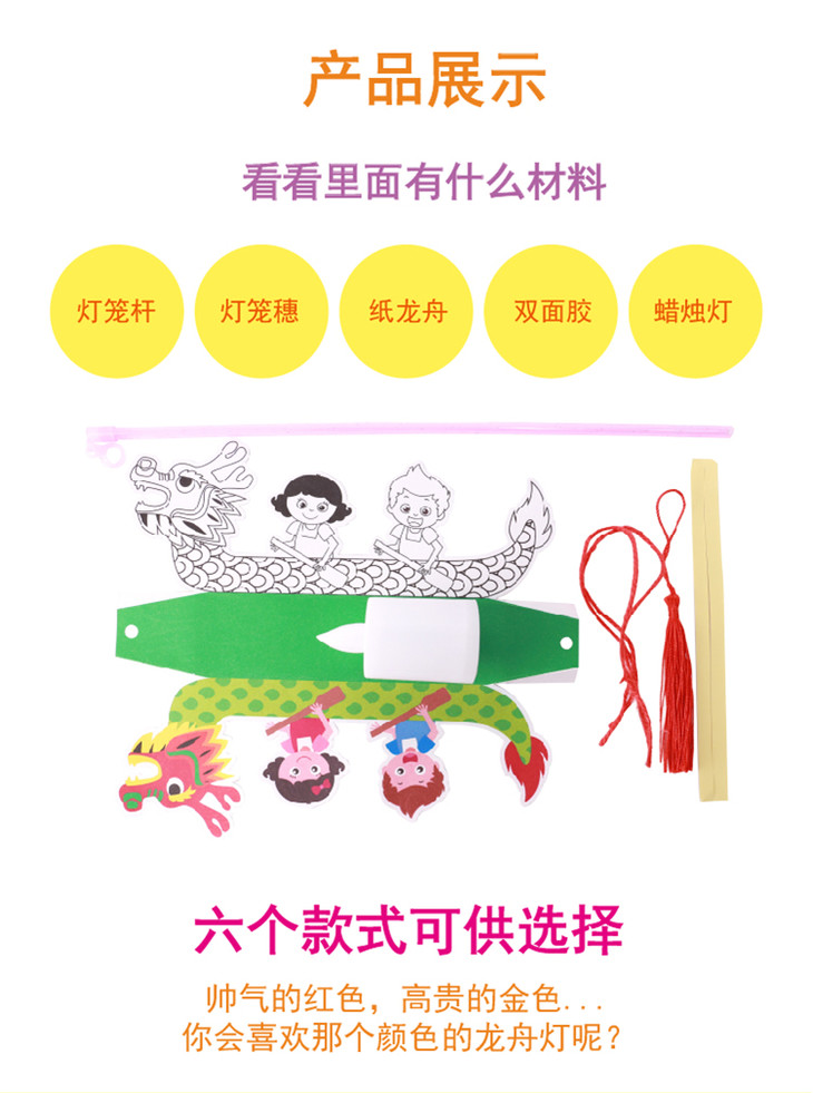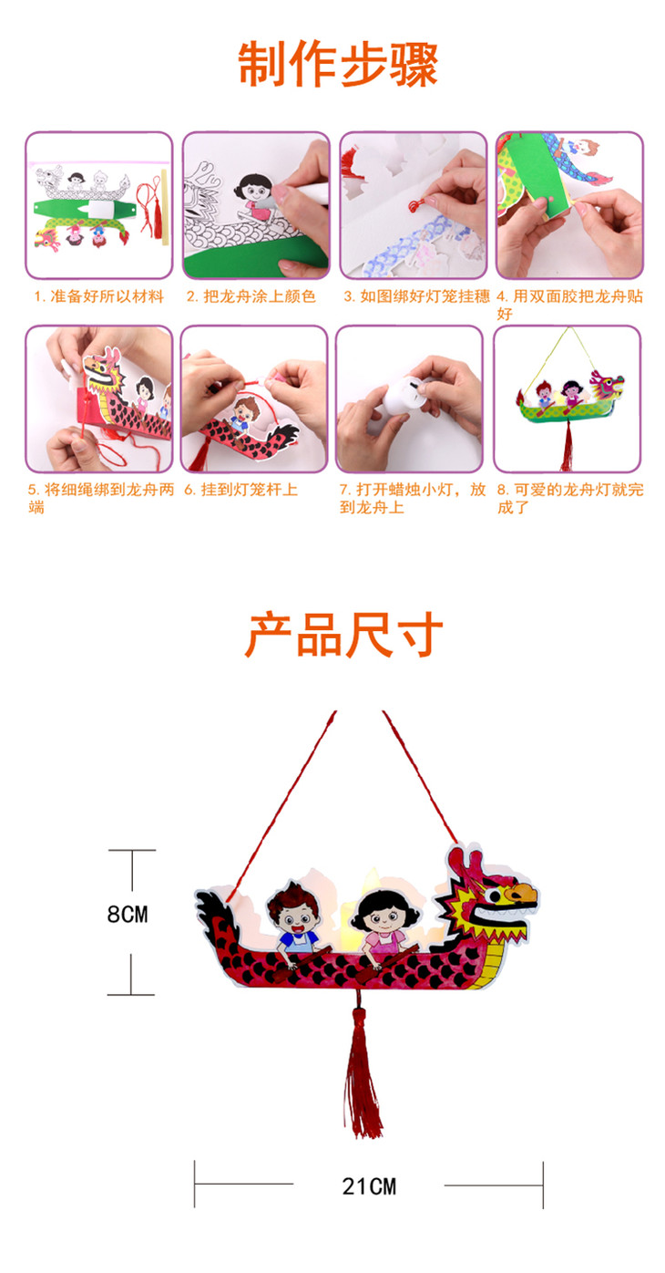 端午节手工diy材料包纸质龙舟灯幼儿园儿自制手提发光涂色纸灯笼