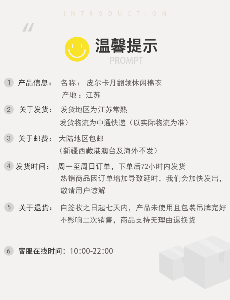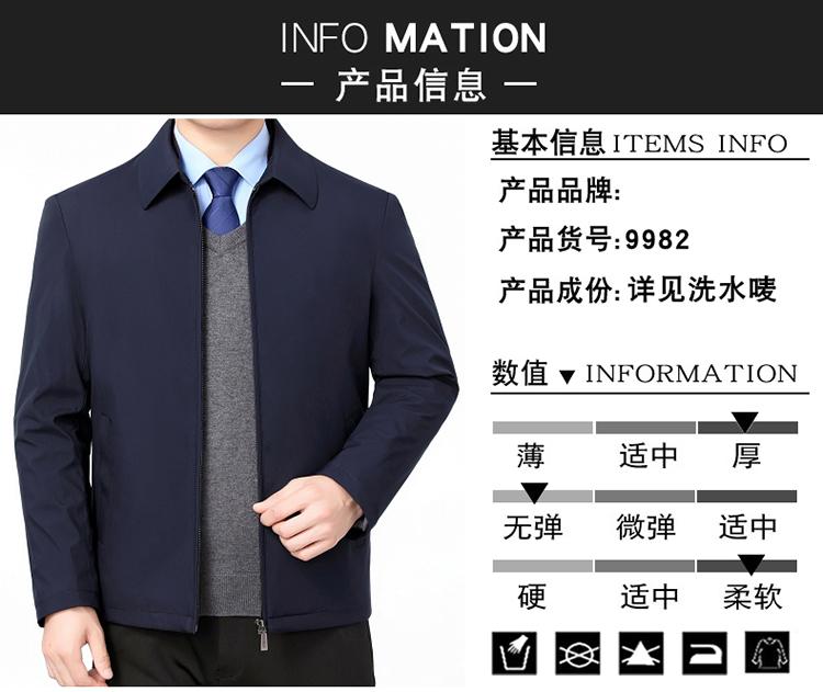 【表层面料柔软舒适 纤维中层耐热稳定】皮尔卡丹翻领休闲棉衣 不易褶皱不易变形 严谨成衣