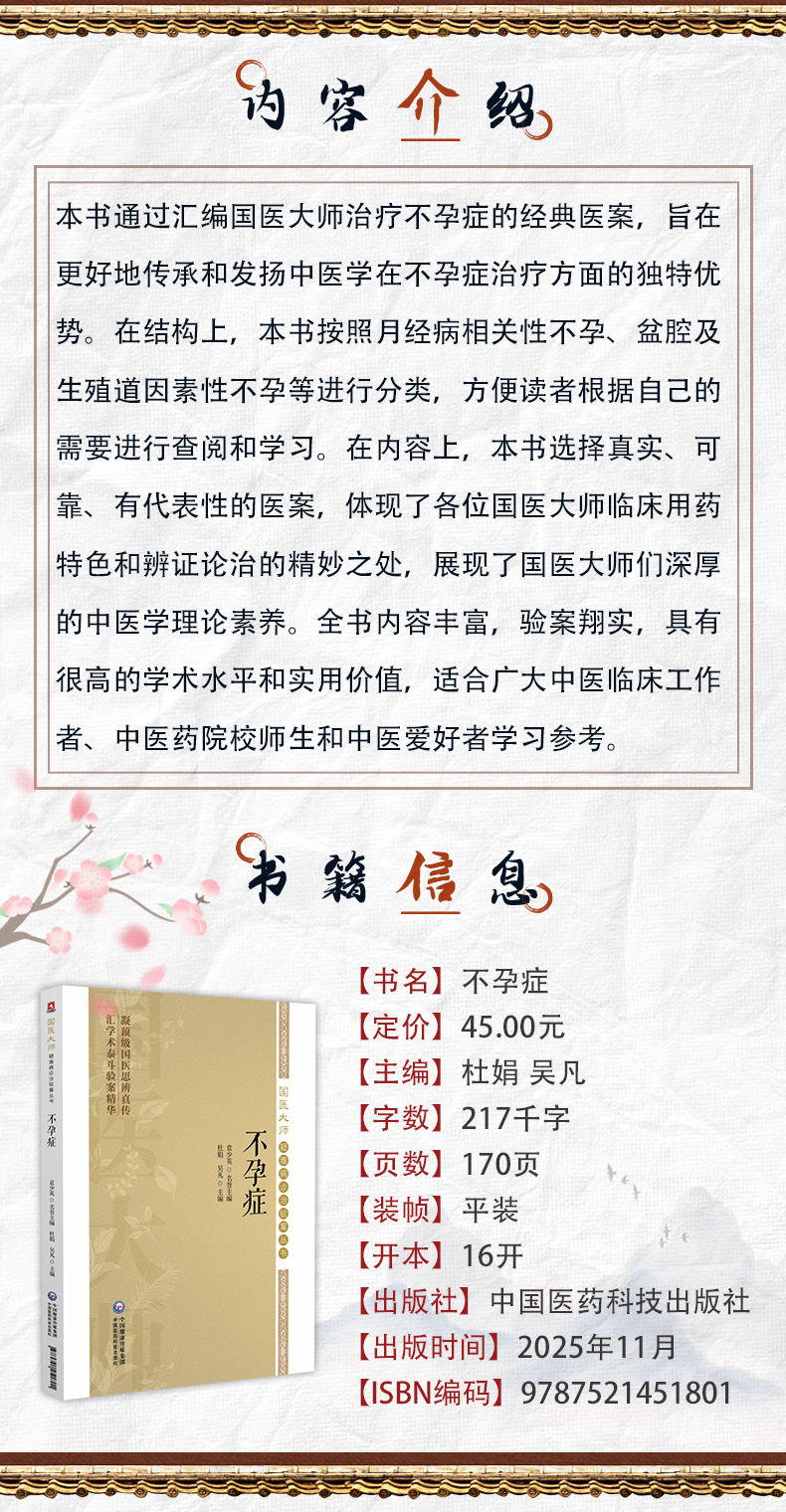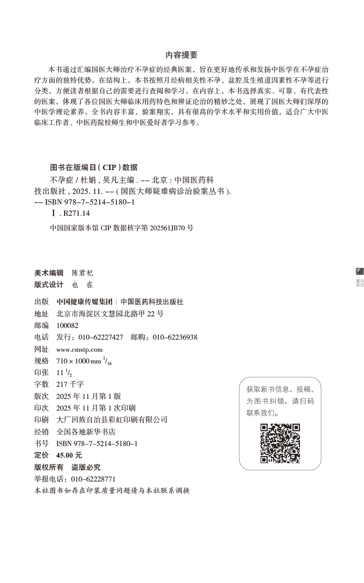 不孕症(国医大师疑难病诊治验案丛书)杜娟 吴凡 适合广大中医临床工作者中医药院校师生和中医爱好者学习参考中国医药科技出版社