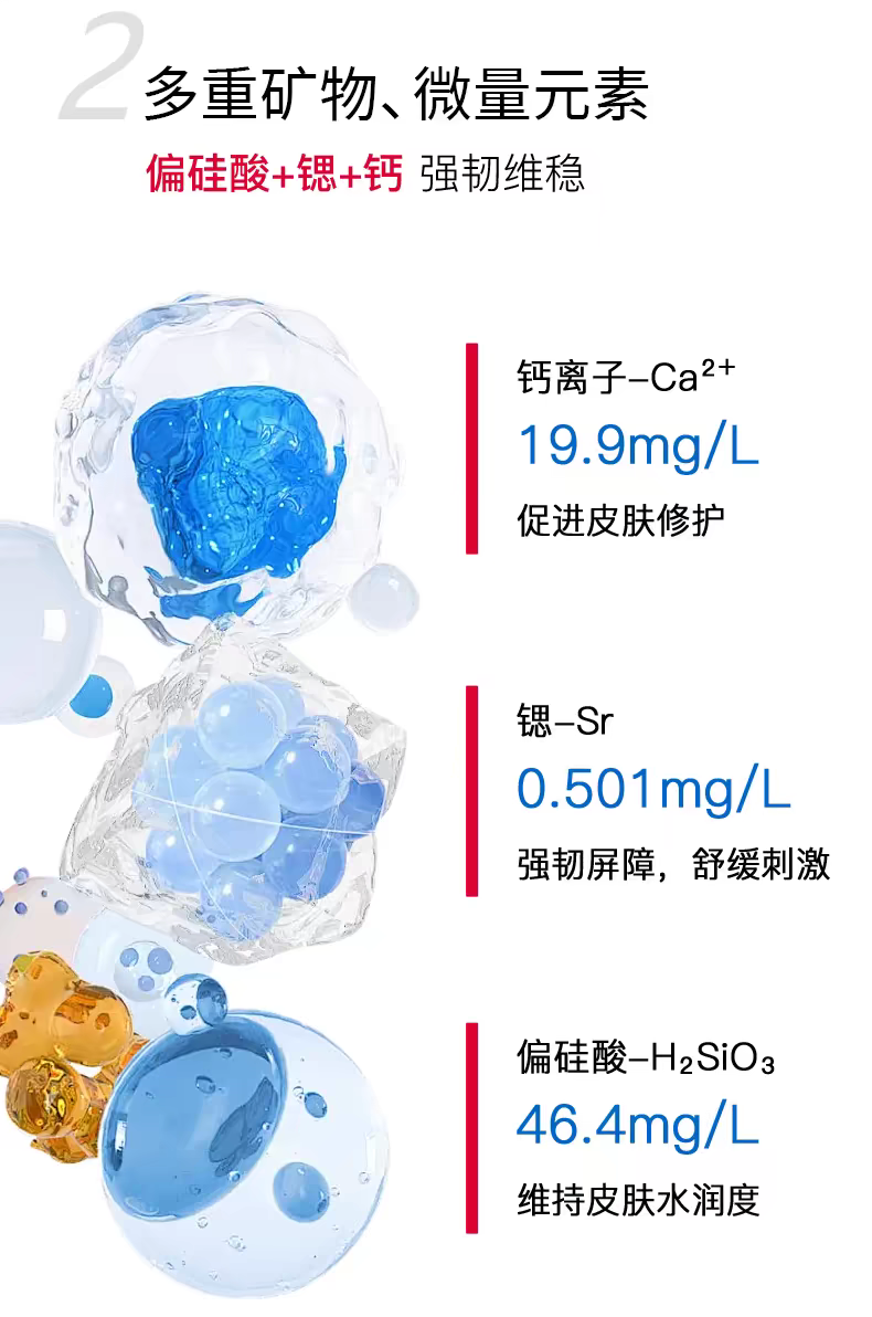 其中的矿物成分,还能促进屏障的修复,强韧肌肤