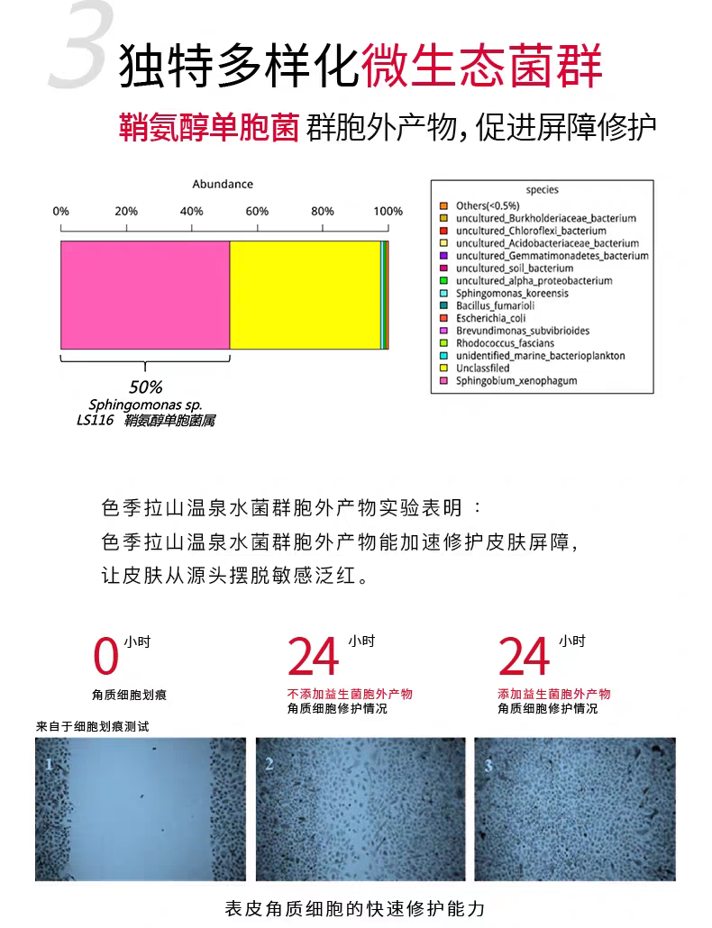 色季拉山温泉水菌群胞外产物能加速修护皮肤屏障