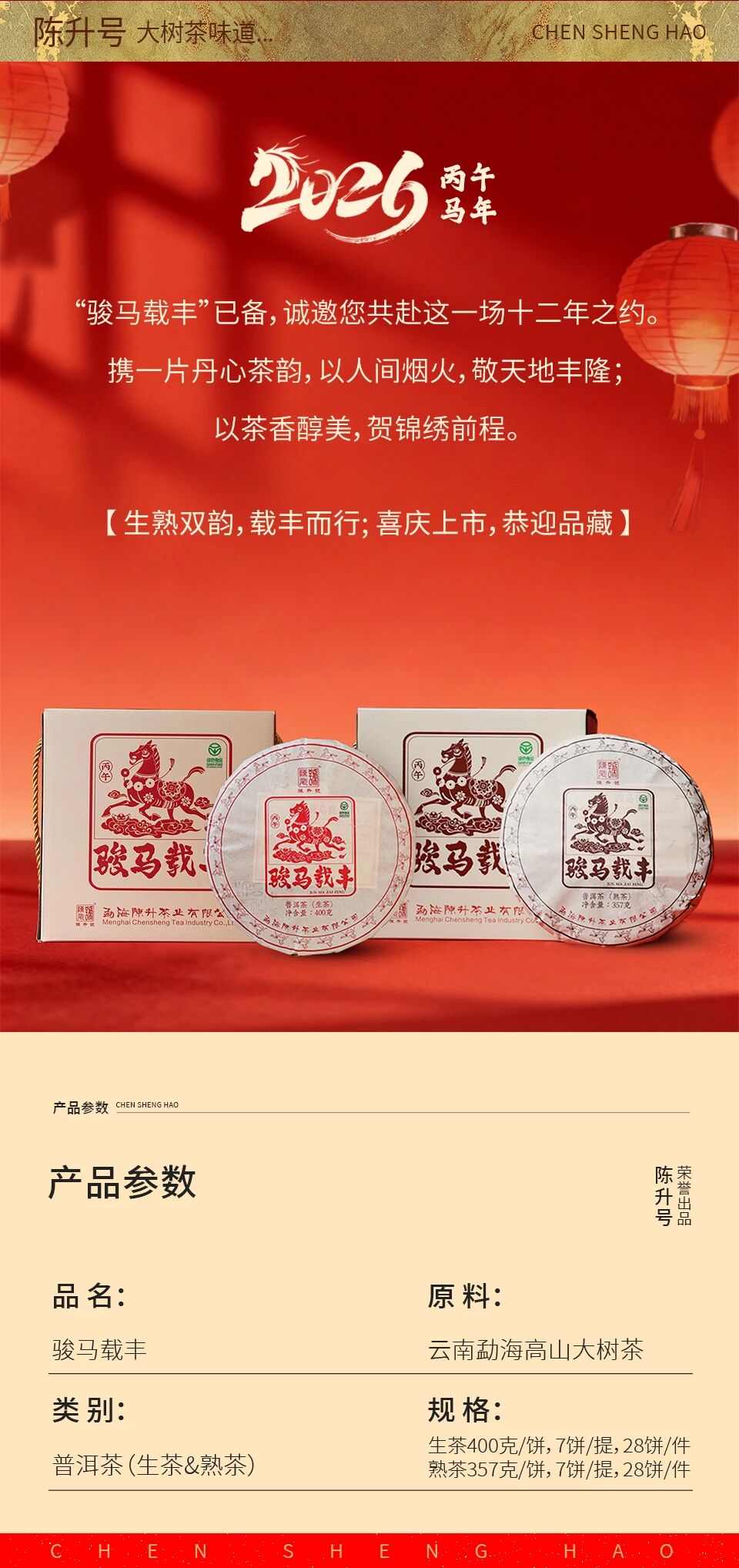 【年货节礼】陈升号2026年生肖茶“骏马载丰”普洱茶|骏马行健·茶载丰年。一茶双味,收藏品饮皆相宜 茶叶茶饼