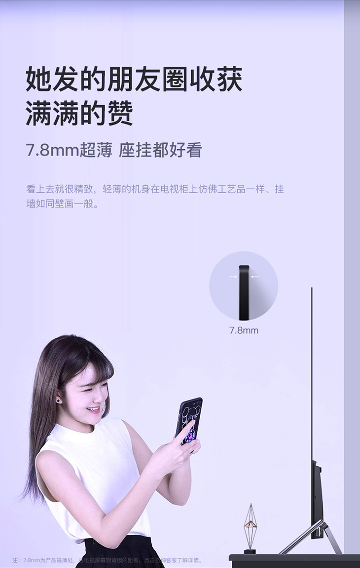 长虹 55D6P 55英寸人工智能超薄版 7.8mm超薄 全面屏 4K超高清液晶智能网络平板电视(星空灰)