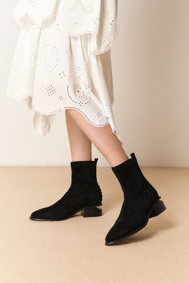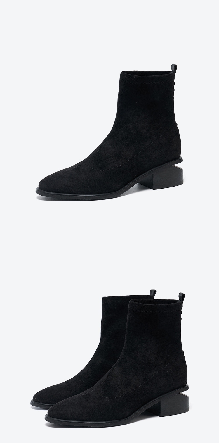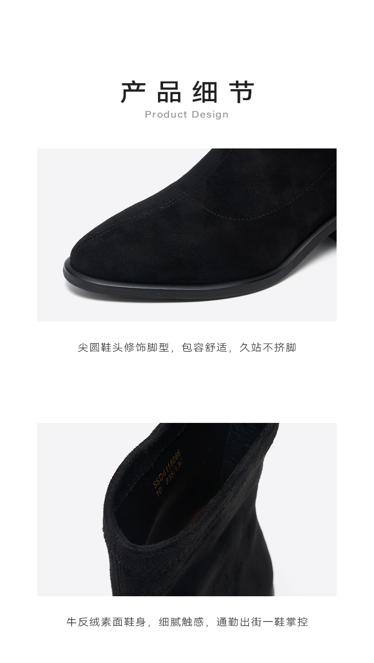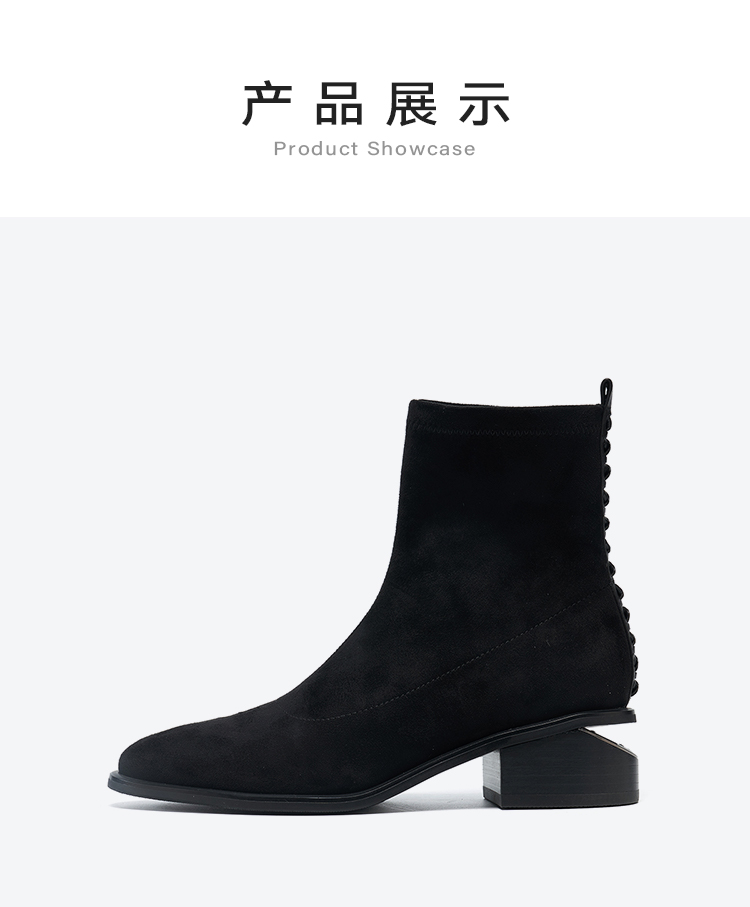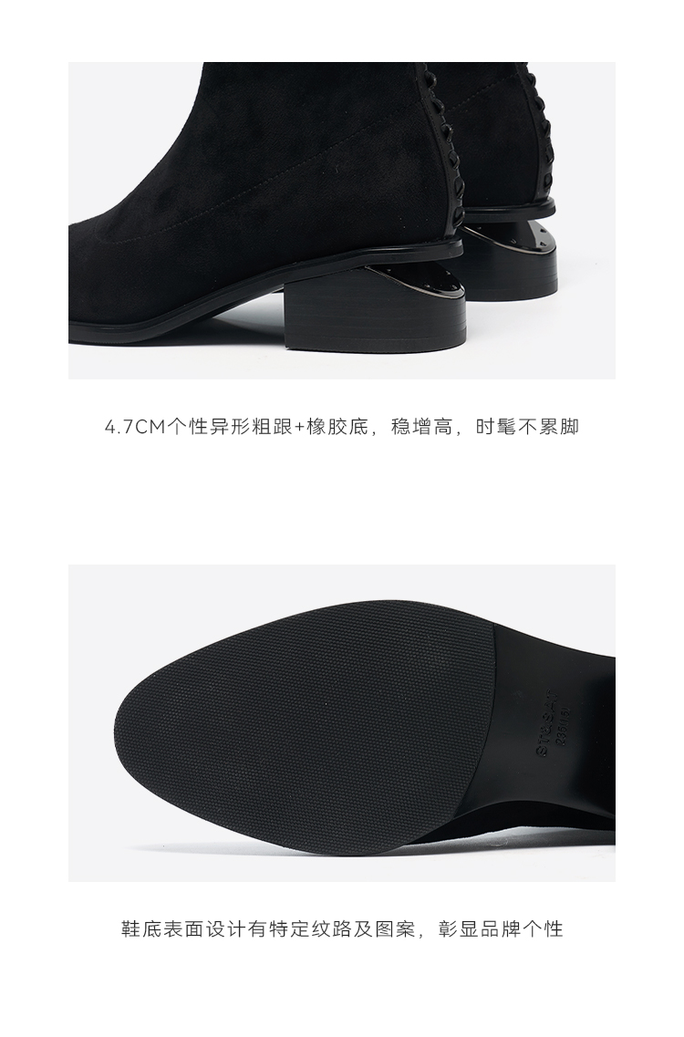 星期六质感绒面镂空粗跟弹力短靴SSD4116066