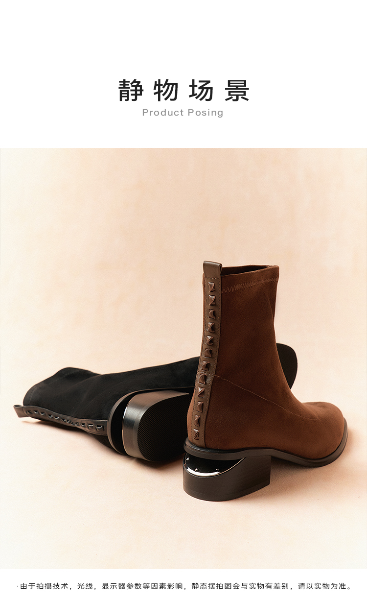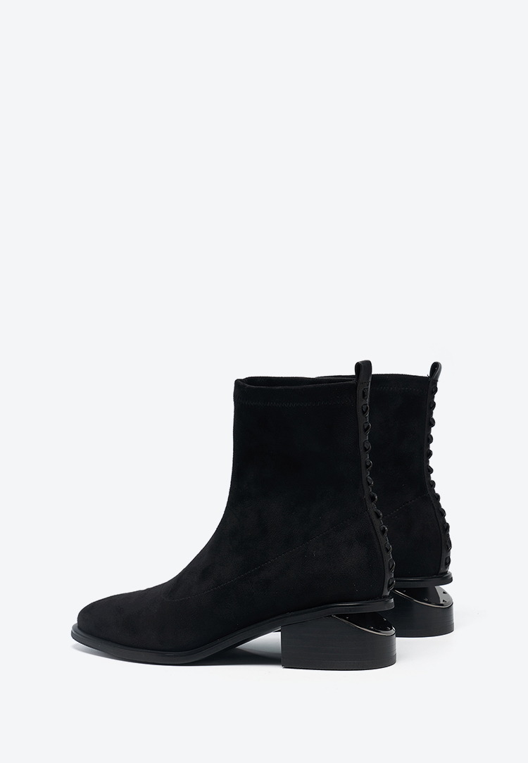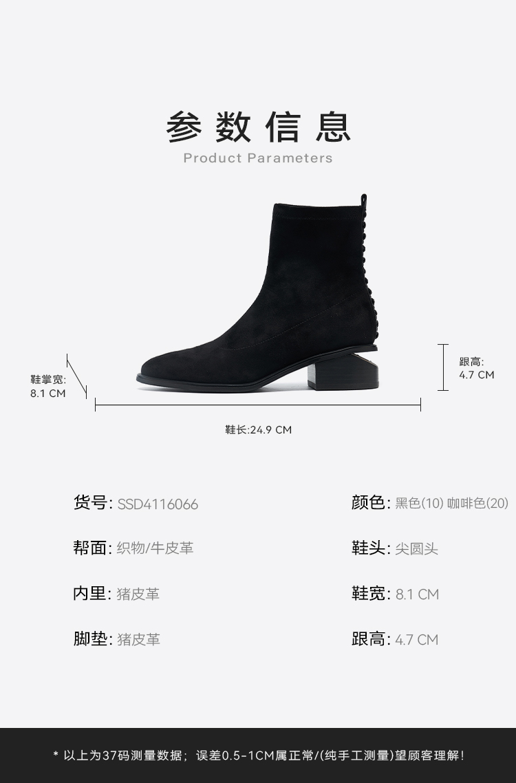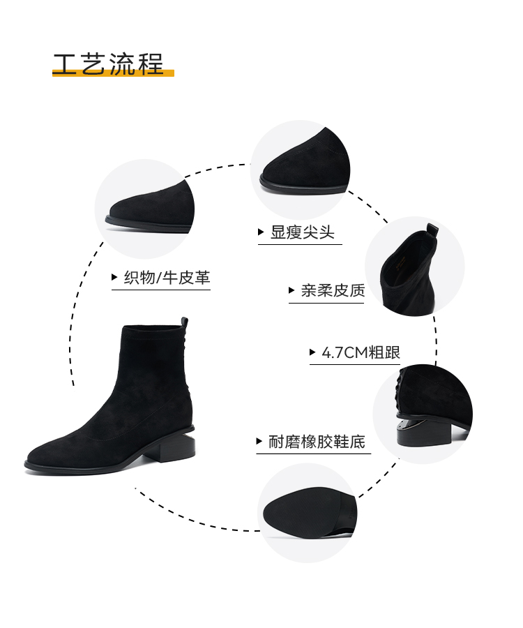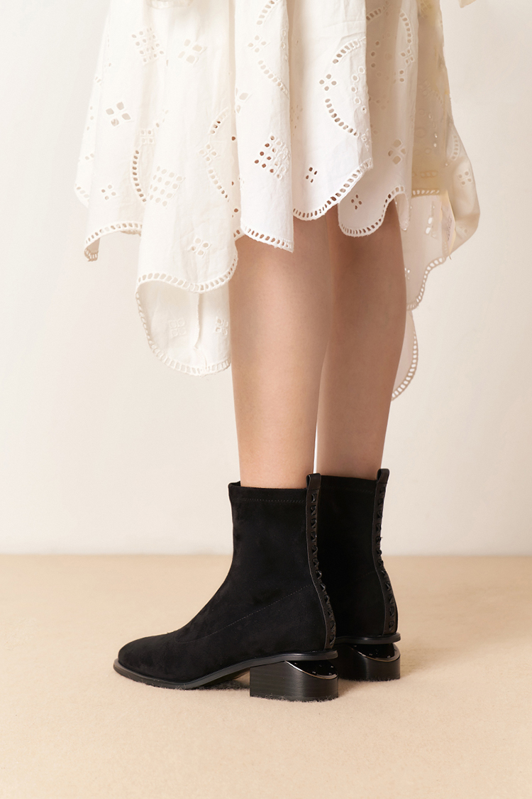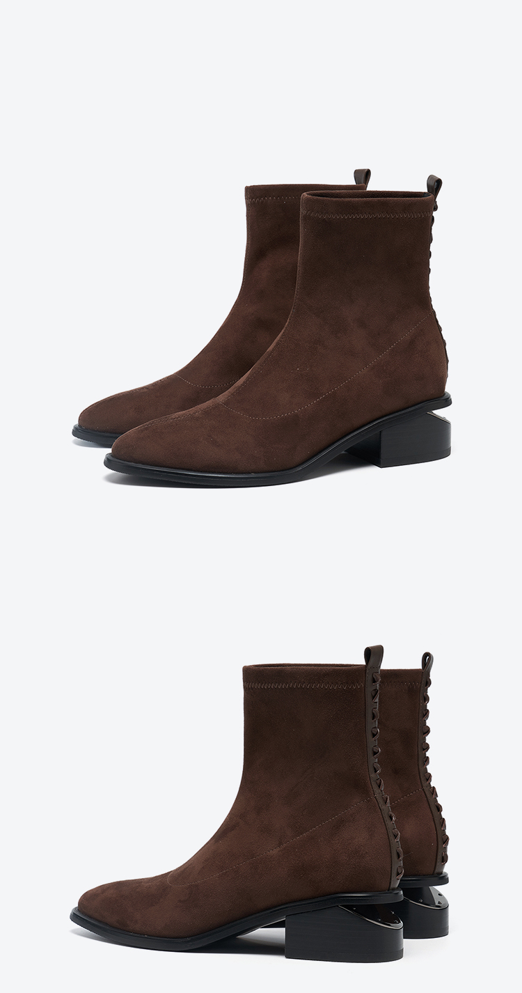 星期六质感绒面镂空粗跟弹力短靴SSD4116066