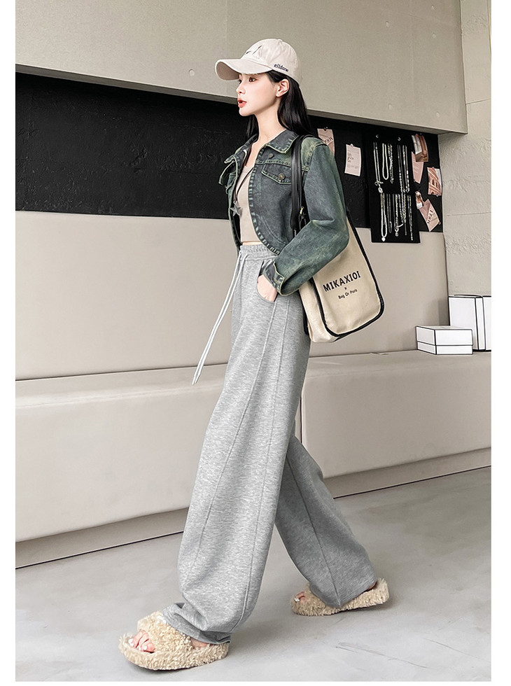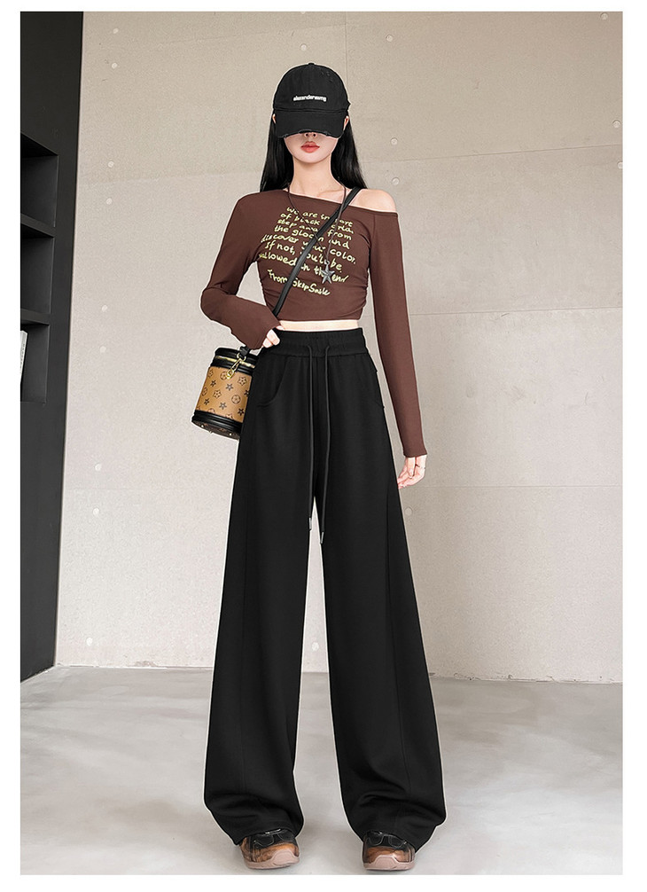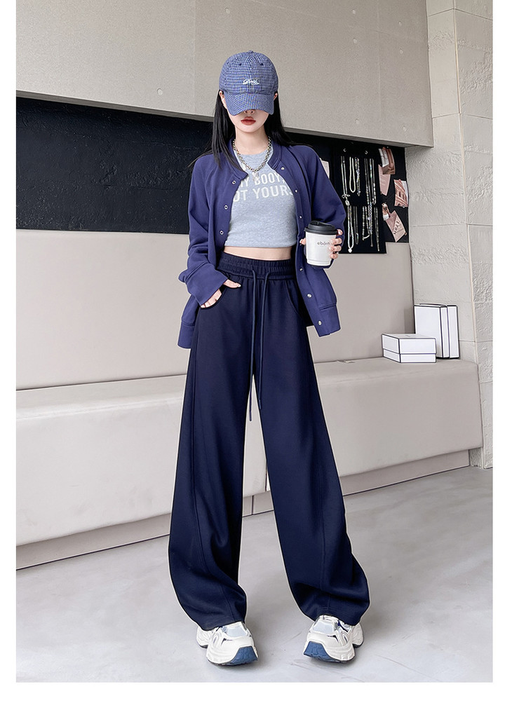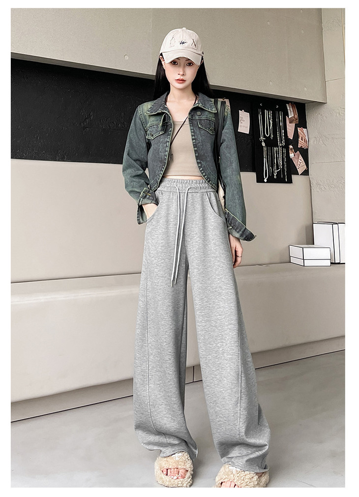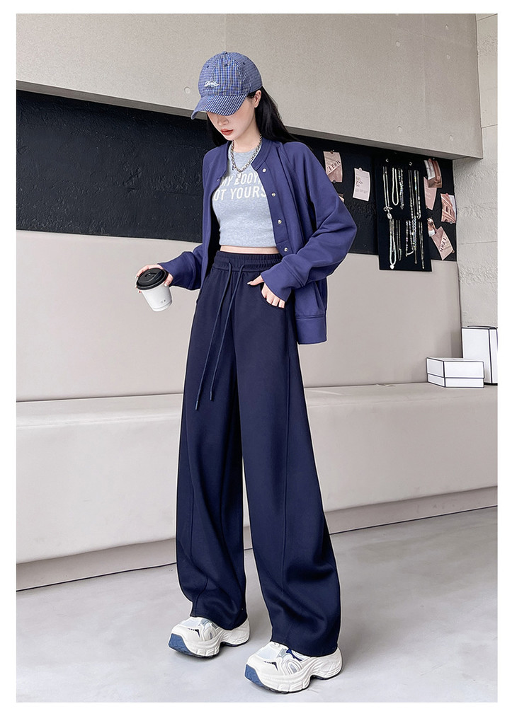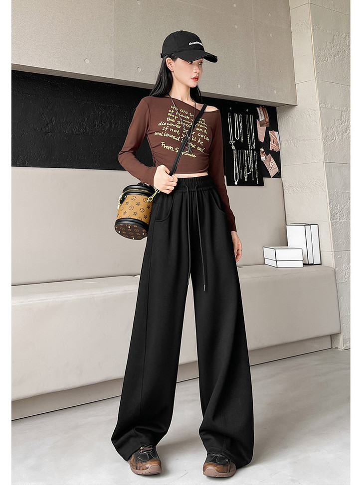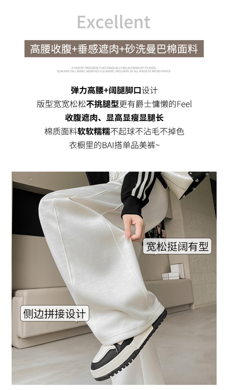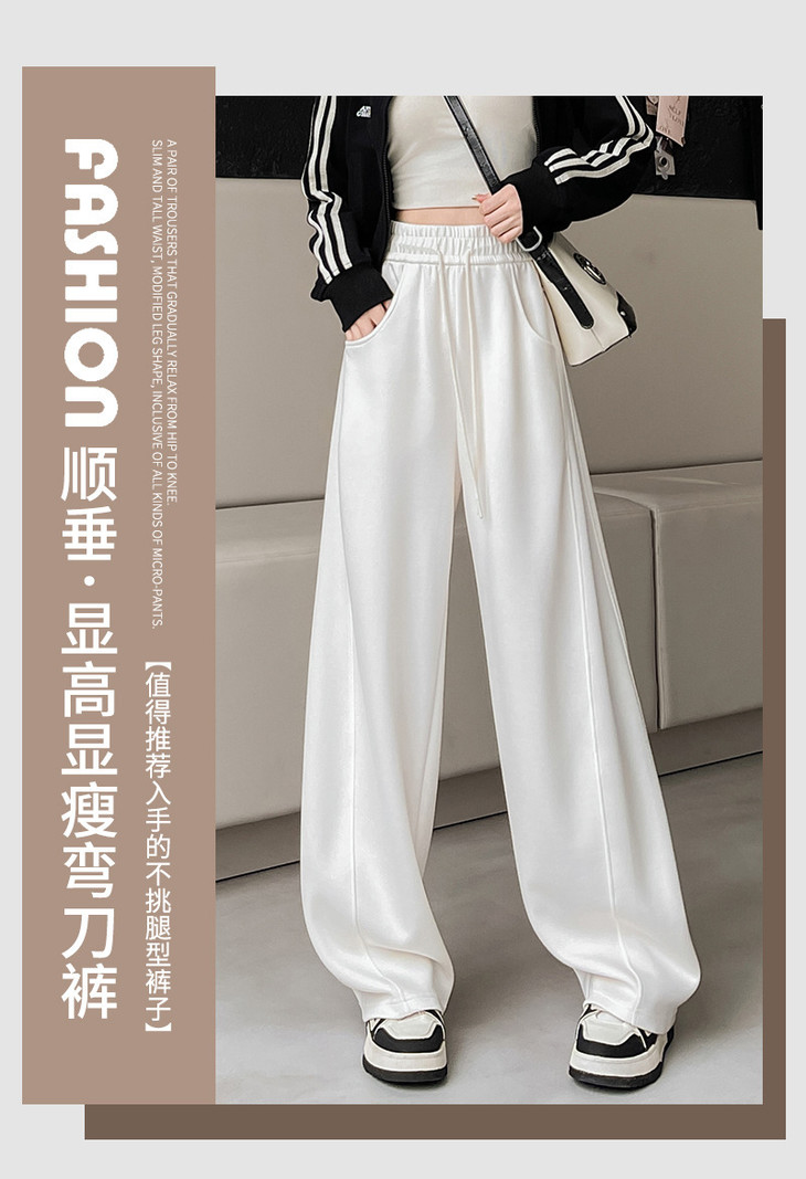 【春秋新款慵懒风阔腿裤】女高腰垂感弯刀裤宽松显瘦拖地休闲裤女