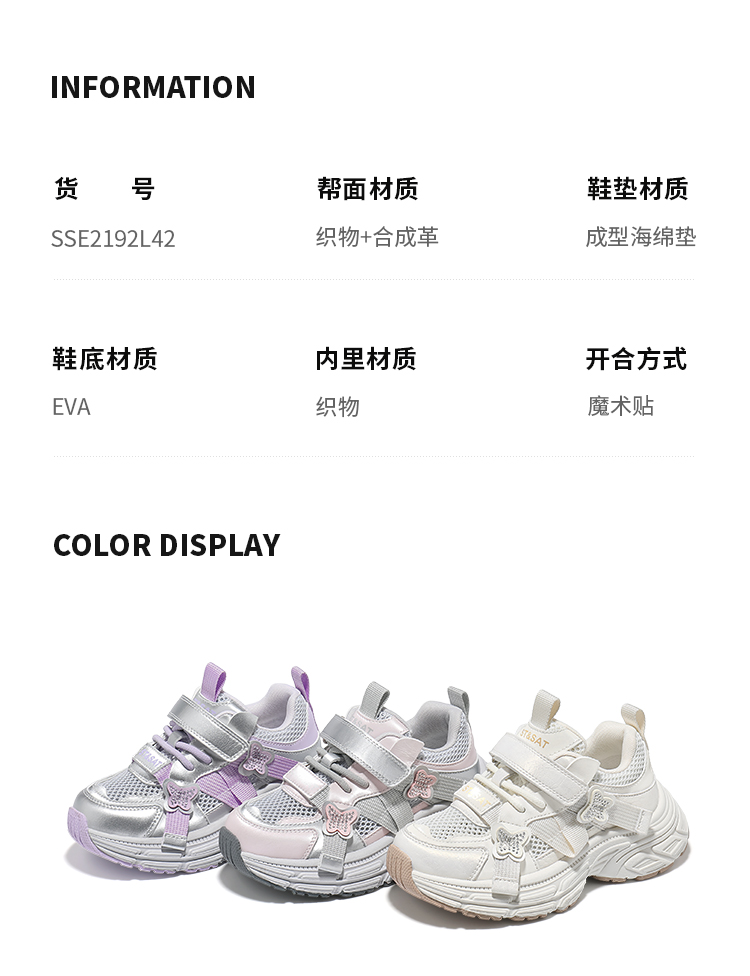【童鞋】星期六甜酷闪钻蝴蝶女童老爹鞋SSE2192L42
