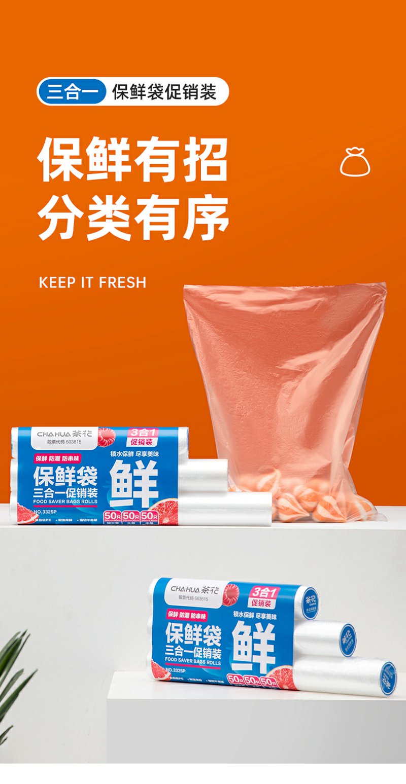 【茶花】食品保鲜袋三合一