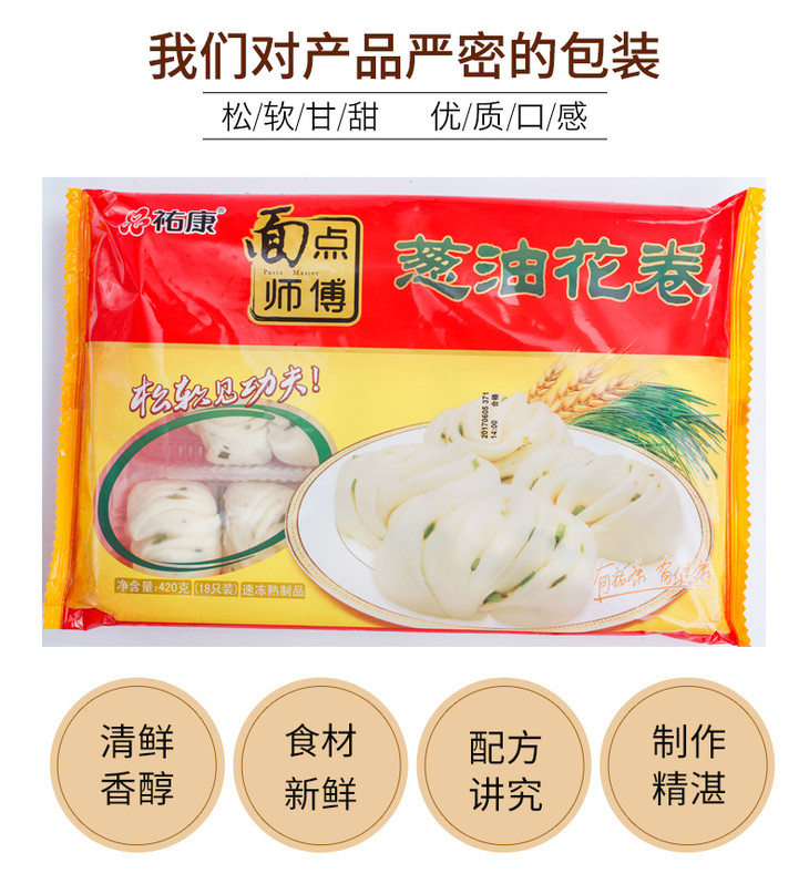 【包邮套餐】祐康面点师傅420g葱油花卷*3包