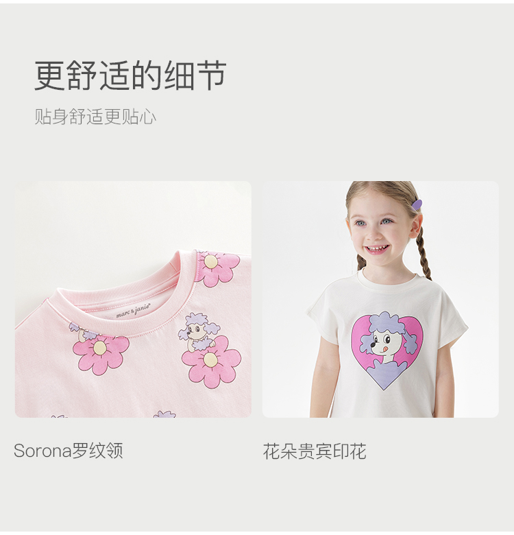 【凉感透气】马克珍妮女童萌趣贵宾短袖T恤 宝宝夏装新款550778