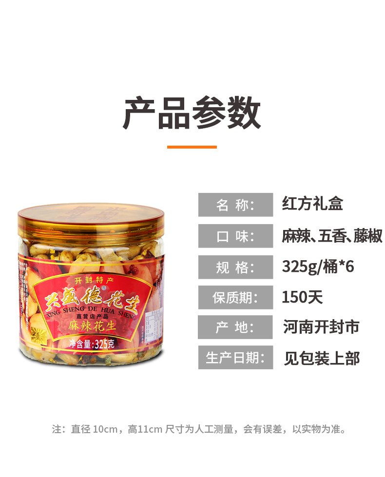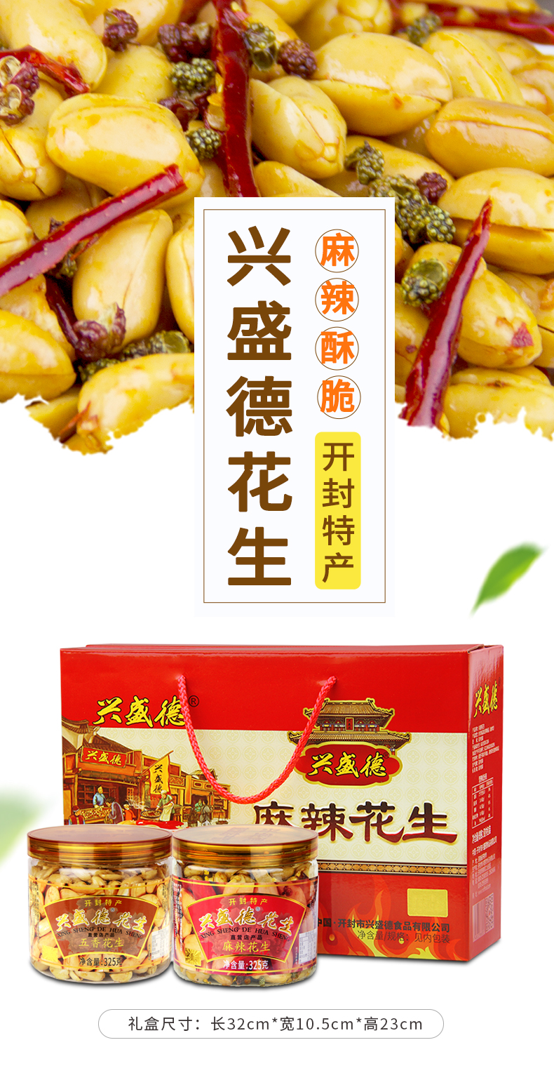 兴盛德直营店 麻辣 五香 藤椒 花生325g*6桶 方形红色礼盒