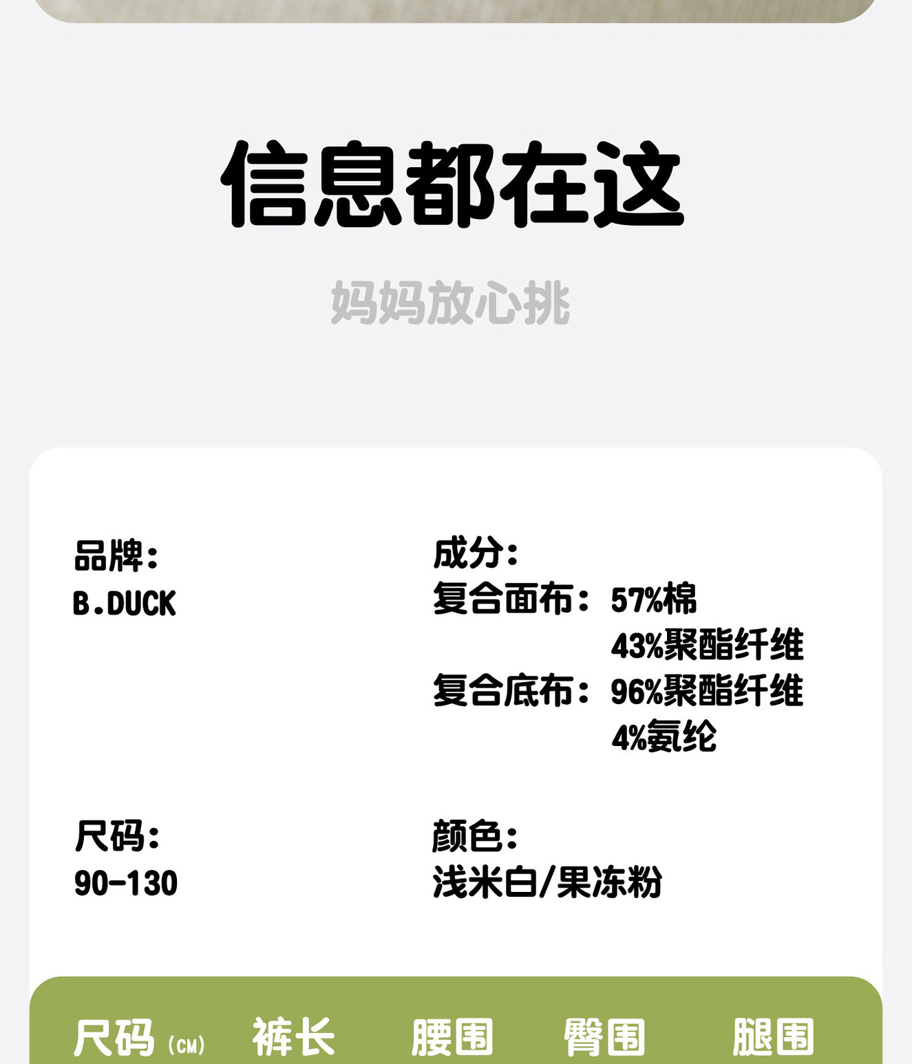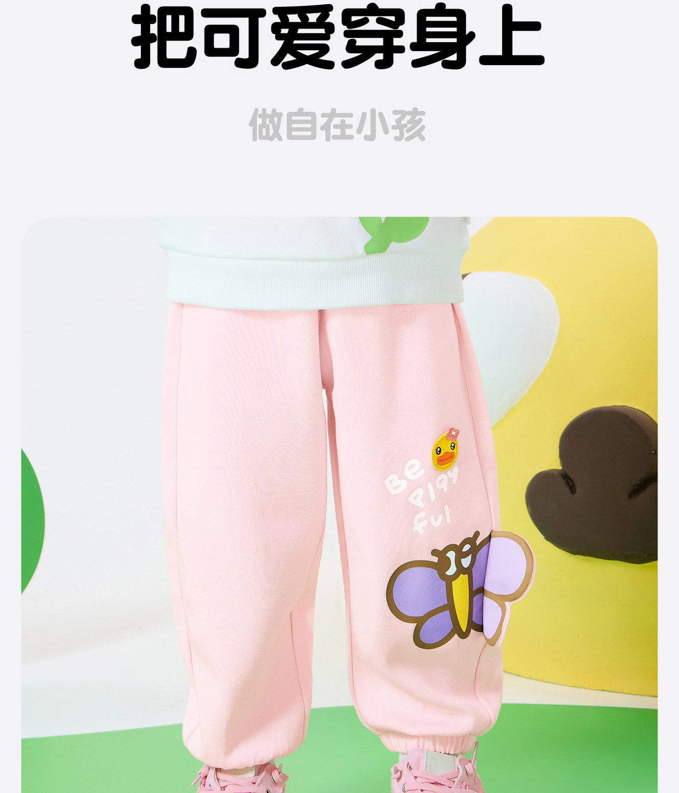bduck小黄鸭童装春秋女童裤子春款卫裤儿童女宝宝运动裤90-130 FF1663022