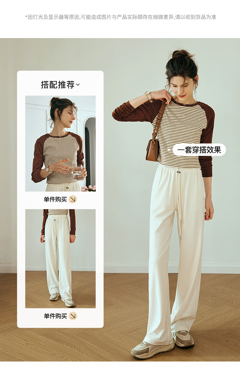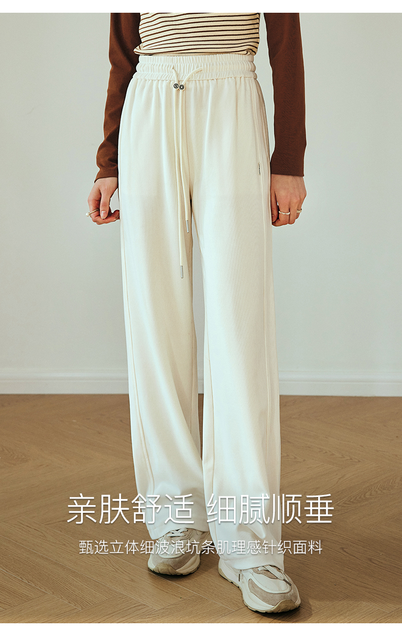 OLrain欧芮儿法式坑条针织休闲裤女夏季2023新款高腰直筒垂感长裤