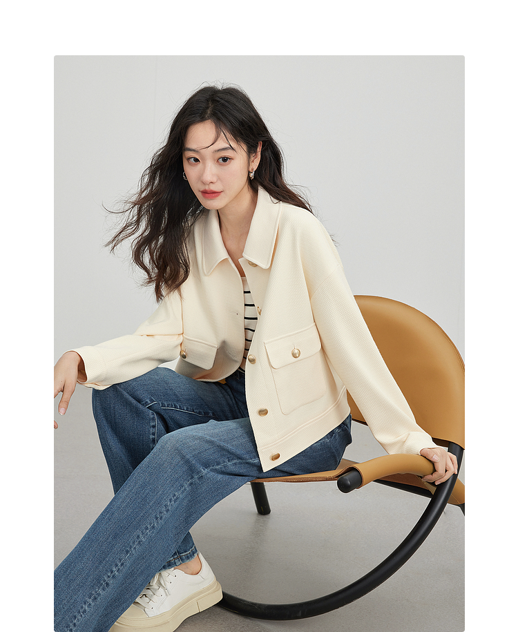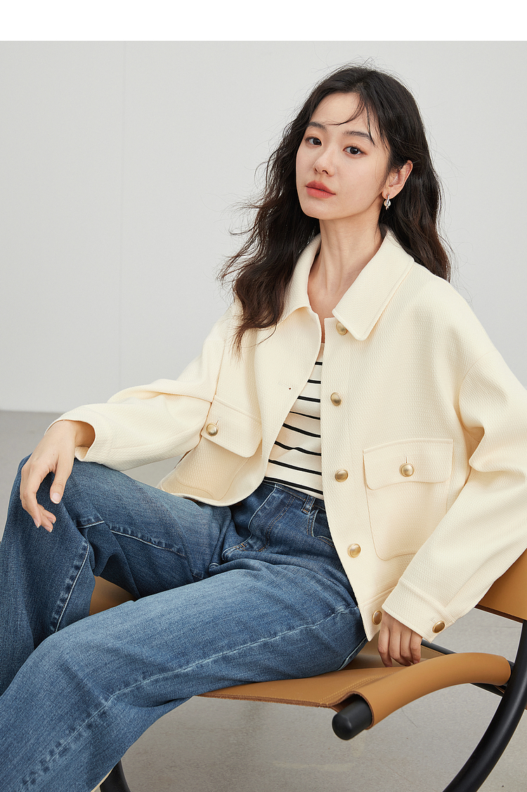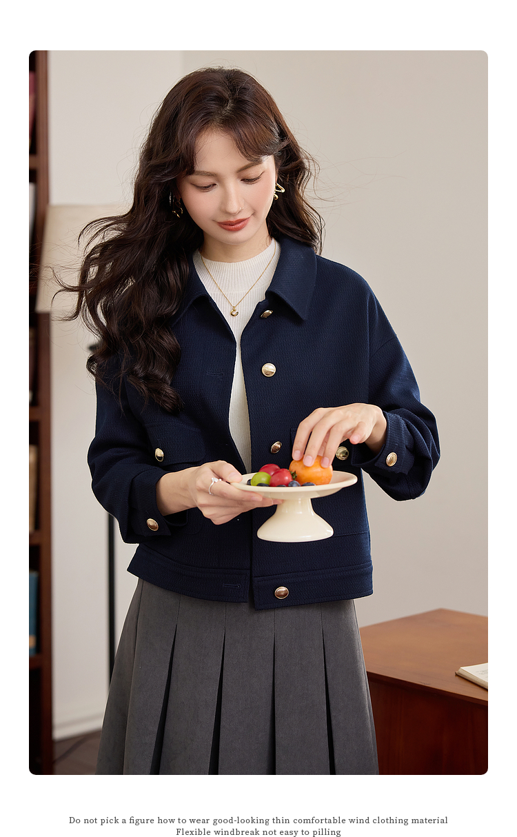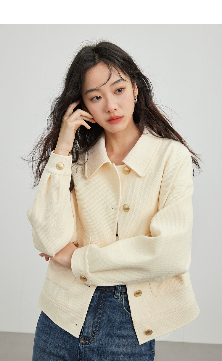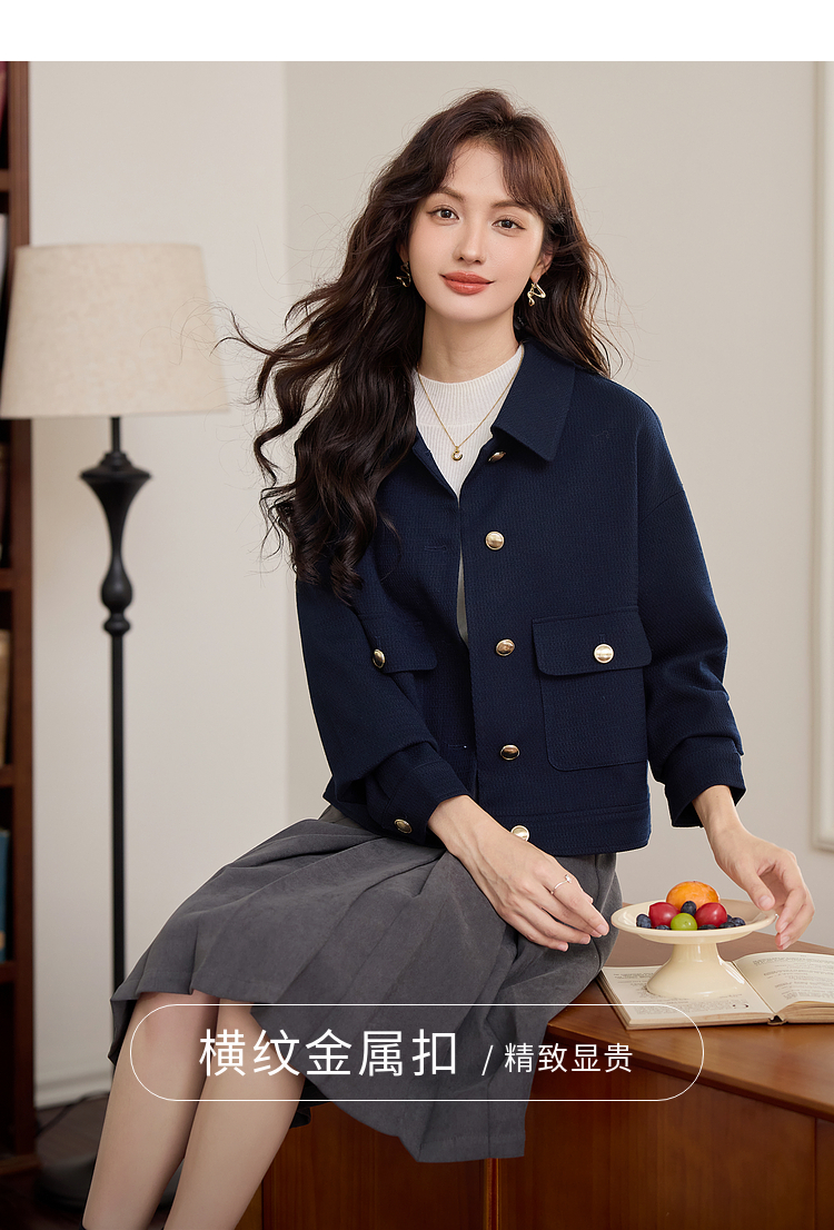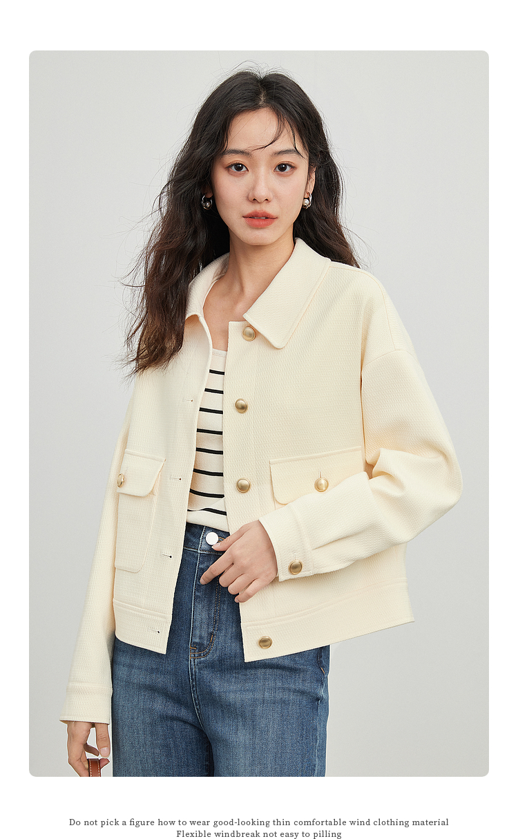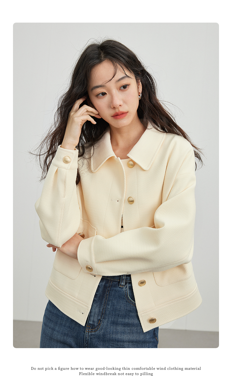 【年货节】熙世界小香风休闲短款外套女小个子百搭翻领夹克上衣2025秋装新款