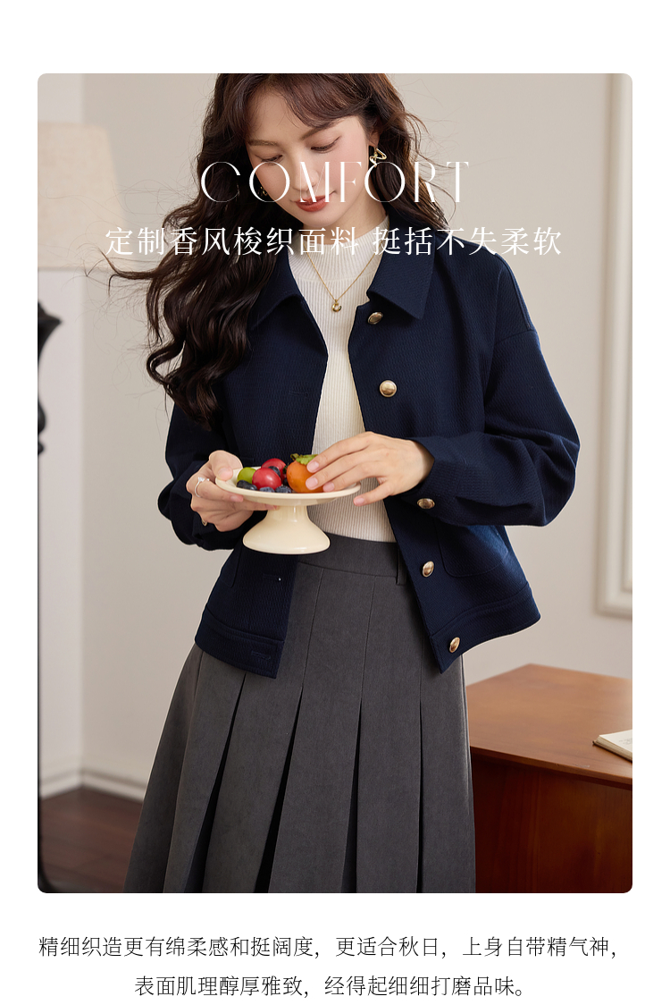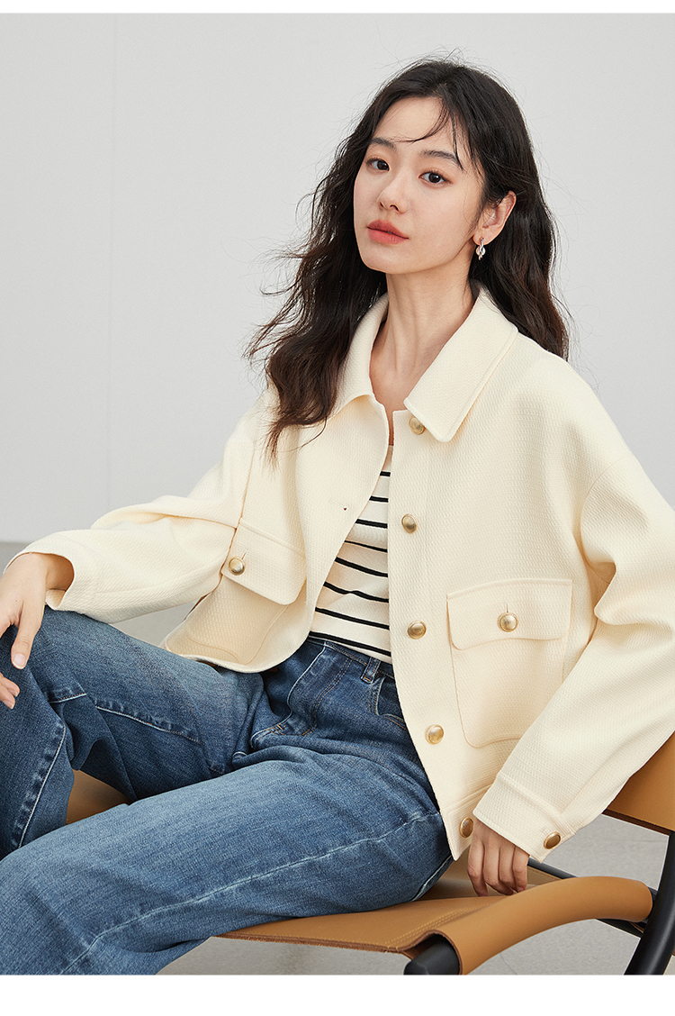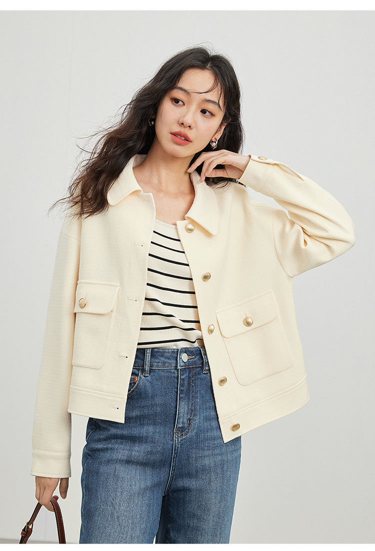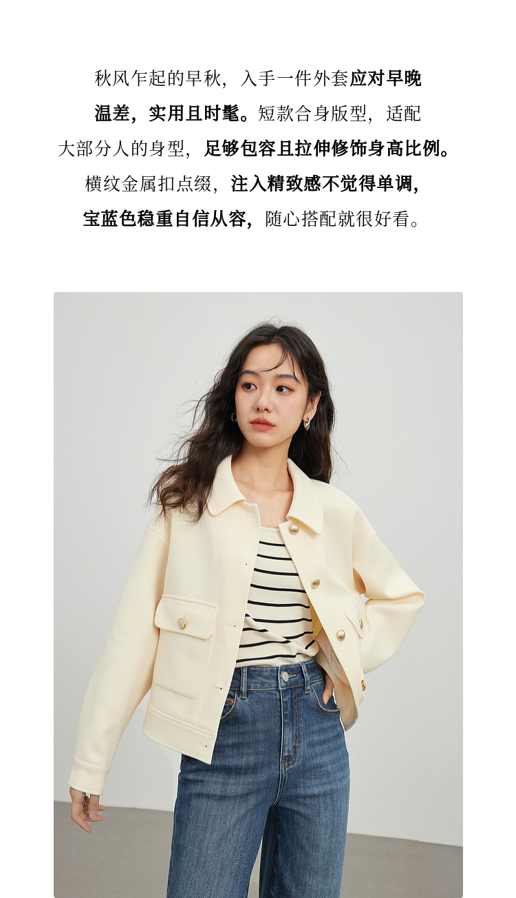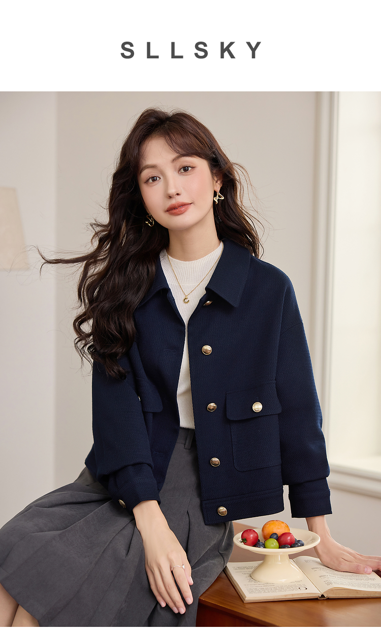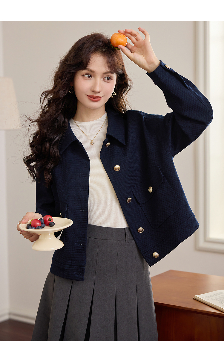 【年货节】熙世界小香风休闲短款外套女小个子百搭翻领夹克上衣2025秋装新款