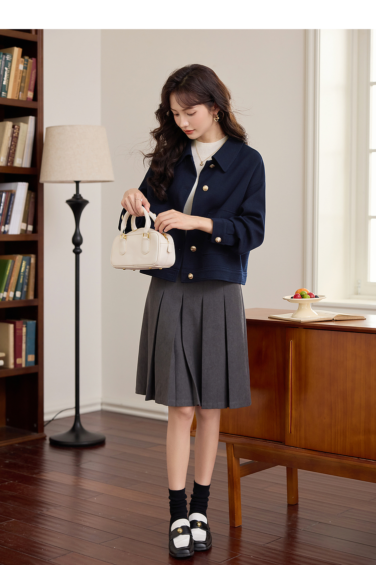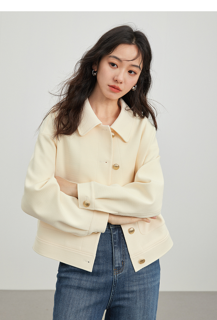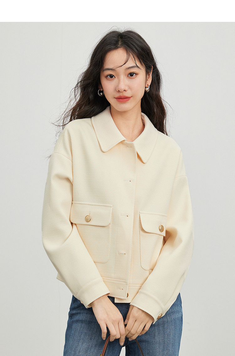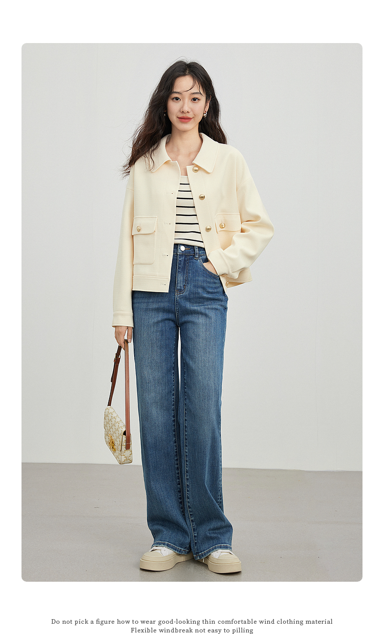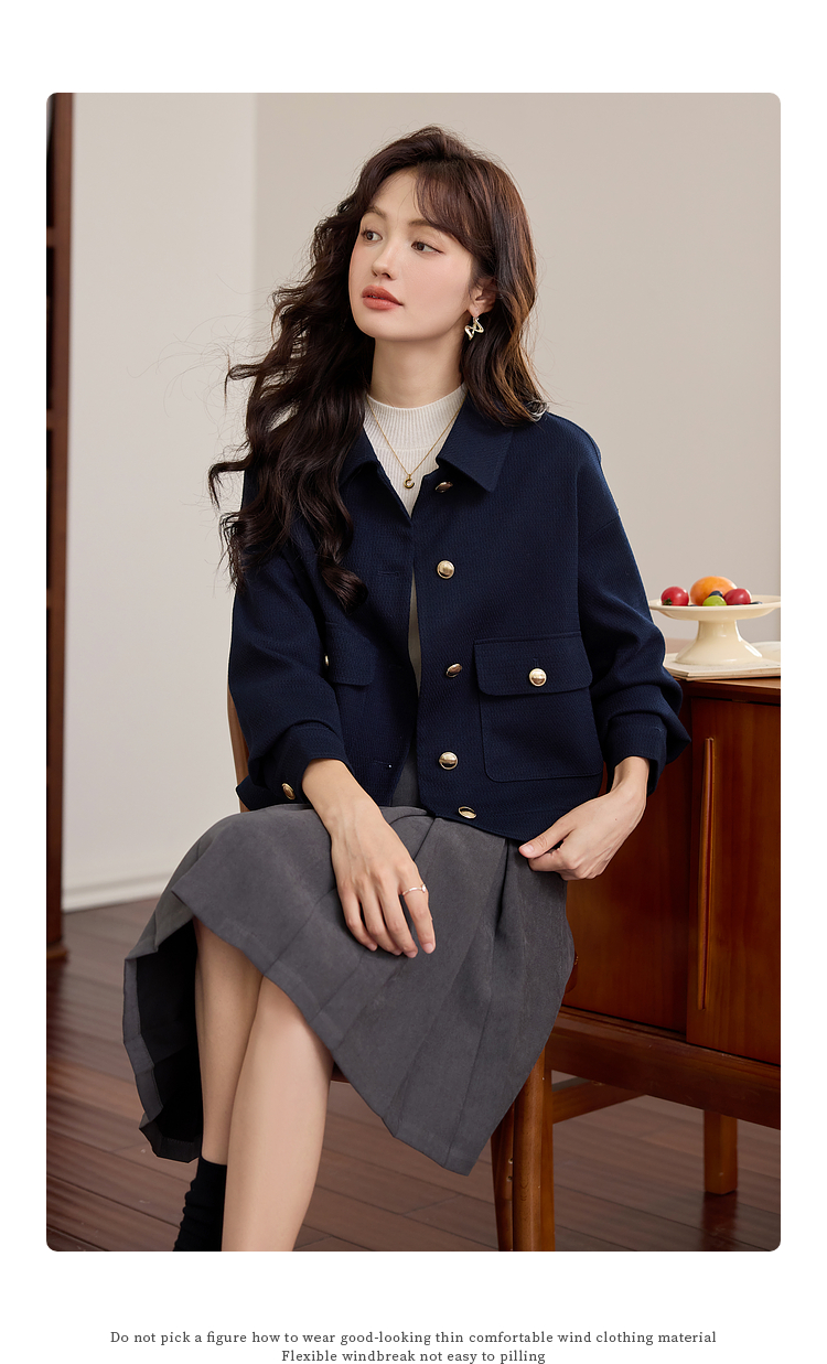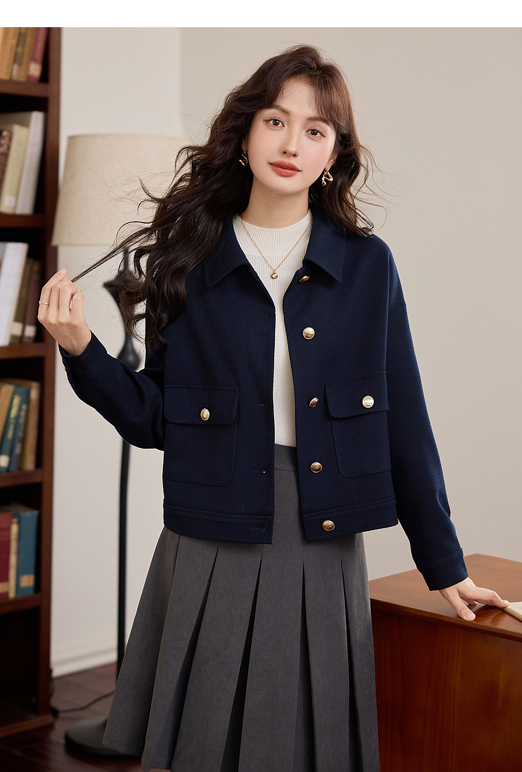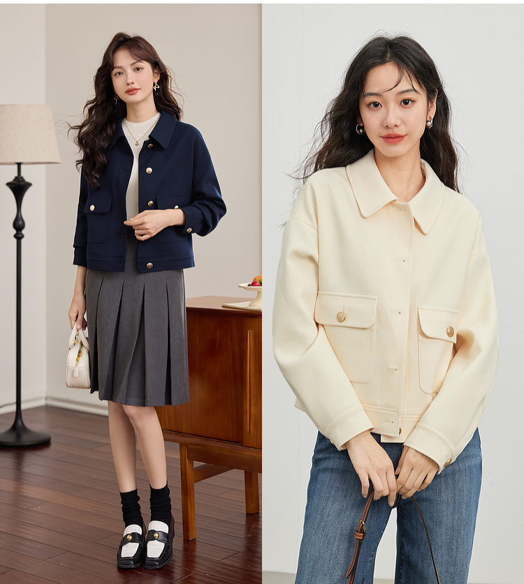 【年货节】熙世界小香风休闲短款外套女小个子百搭翻领夹克上衣2025秋装新款