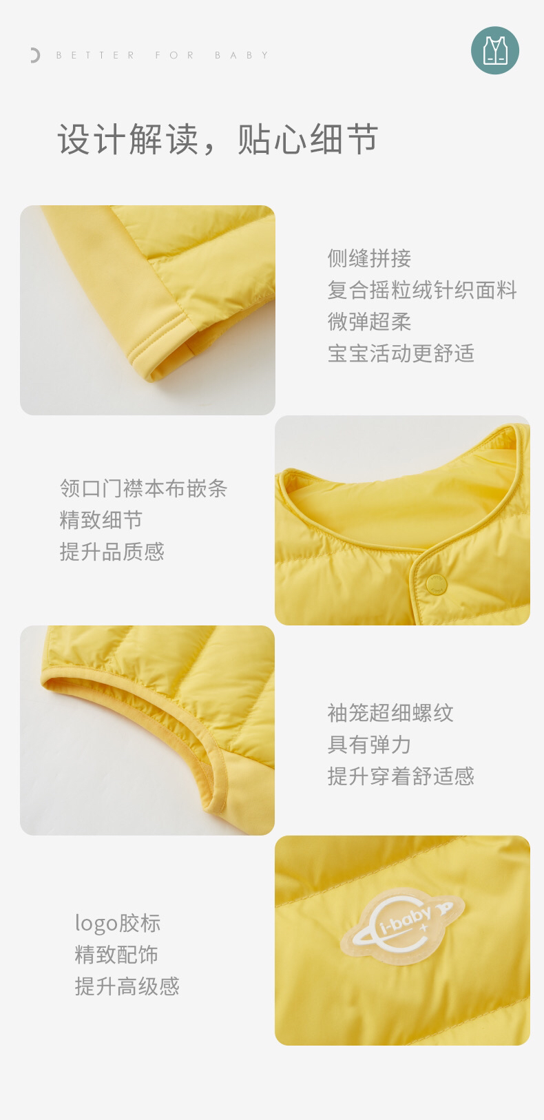 【59元秒杀】i-baby儿童恒温轻暖羽绒马甲 冬季新款可爱简约纯色男女童马甲